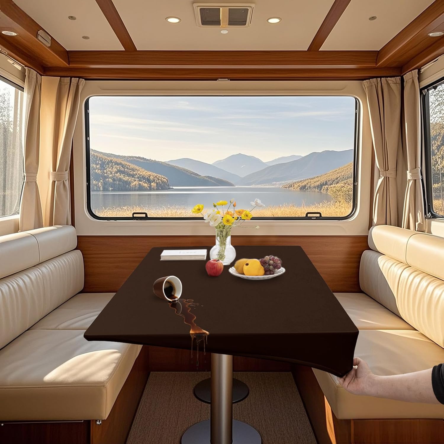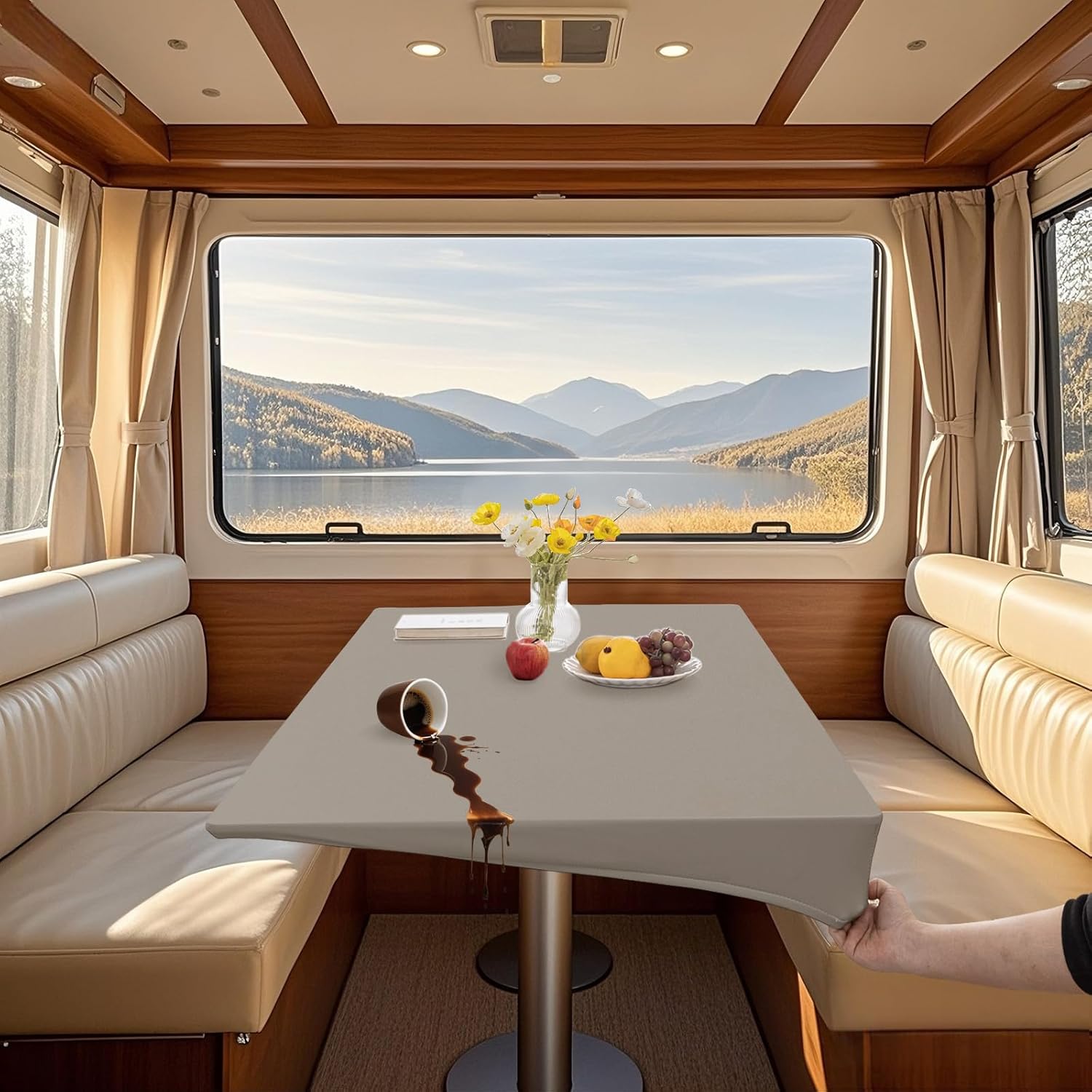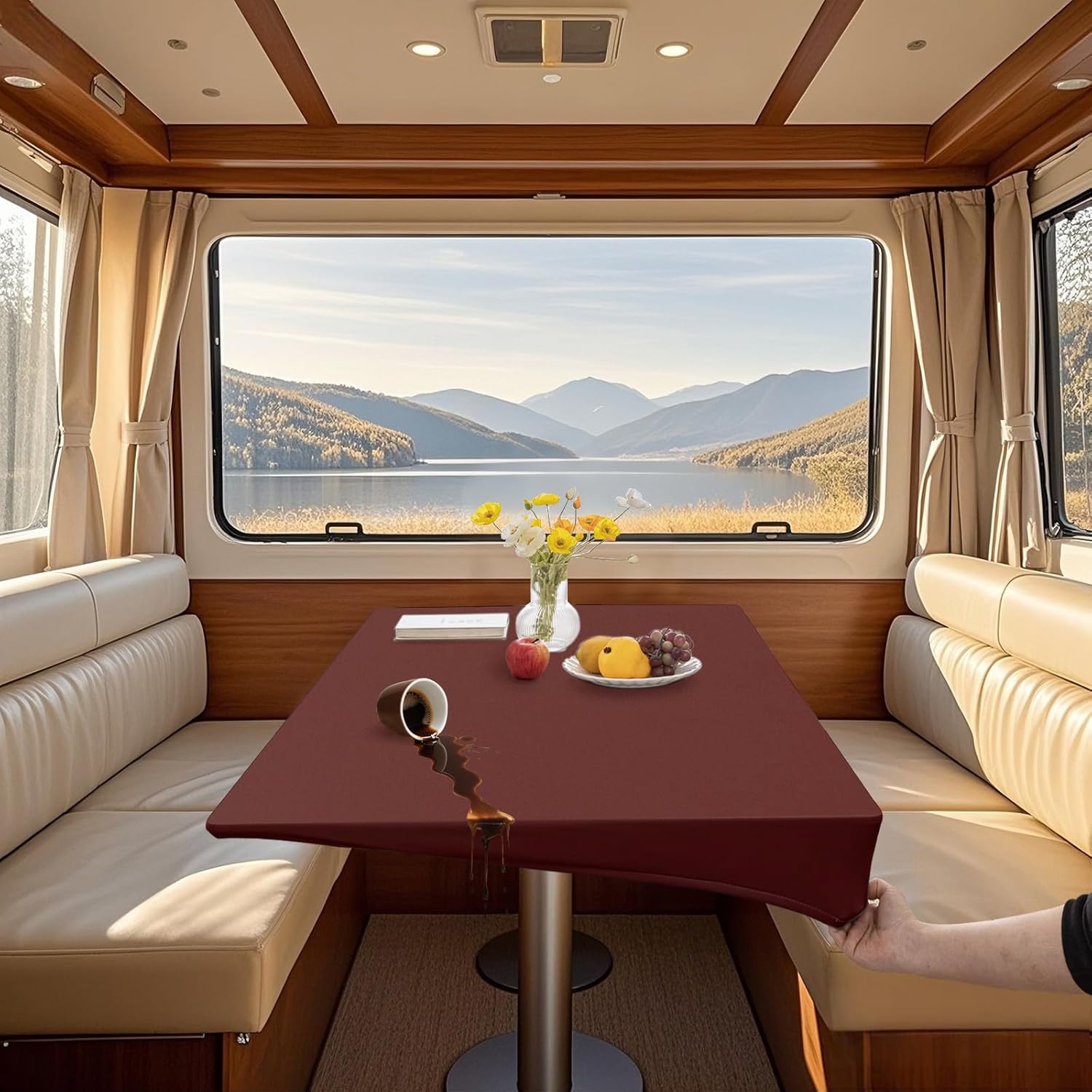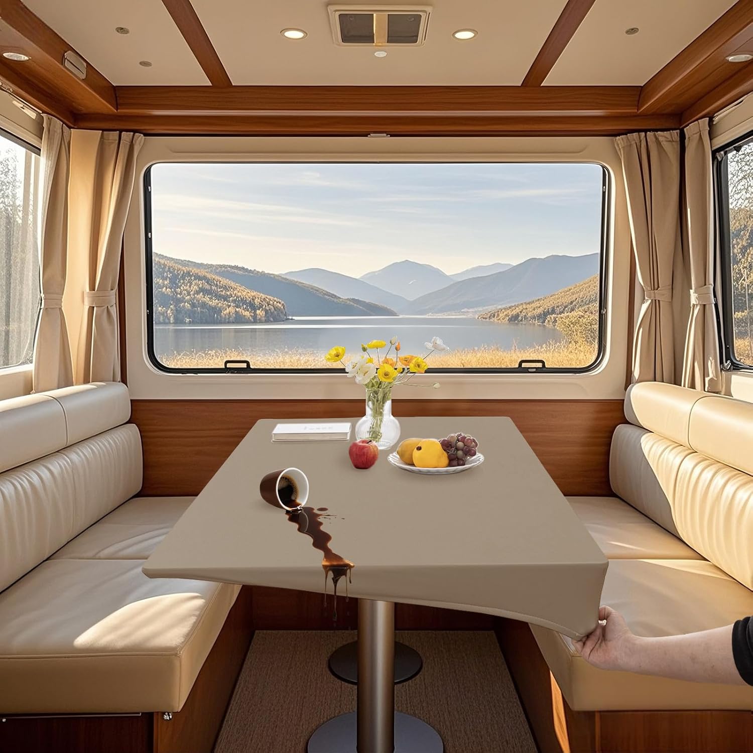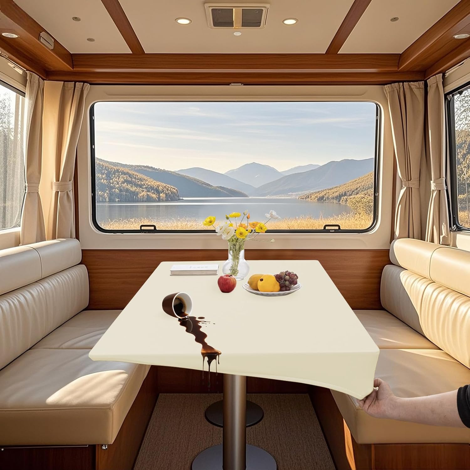 【SPECIAL FEATURE】 - The caravan tablecloth is made of high quality PU leather fabric, waterproof and oilproof. - Elastic band wrapped and 4 ties design, enhancing anti slip performance. - Easy to clean, wipe away stains with a damp towel in just a few seconds. 【NOTE】 - Tablecloths are well insulated, but try not to place freshly cooked pots and pans directly on them. - Machine washing or soaking can damage the molecular structure of the PU leather and cause the coating to peel off, so avoid washing as much as possible. - The tablecloth wrinkles will disappear naturally within a few days. If you want to eliminate the crease as soon as possible, you can iron the back of the tablecloth at low temperature, never iron the front of the tablecloth. - Please measure your table size (length/width/thickness) before purchase to save the trouble of return and exchange. 【SIZE INSTRUCTIONS】 Size refers to the size of the applicable table. For example, the size of your dining table is 80x140 cm / 31x55 in and the tablecloth you can choose measures 80 x 140 cm / 31x55 in. 【PACKAGE INCLUDED】 2 x table cover (other products are not included)
