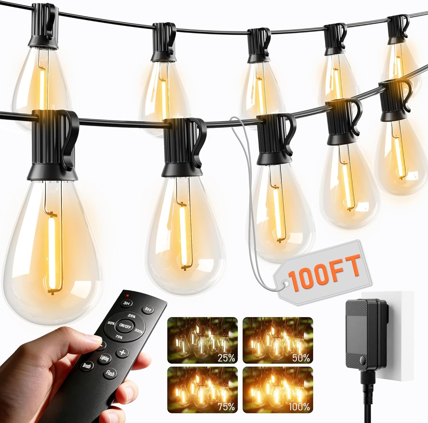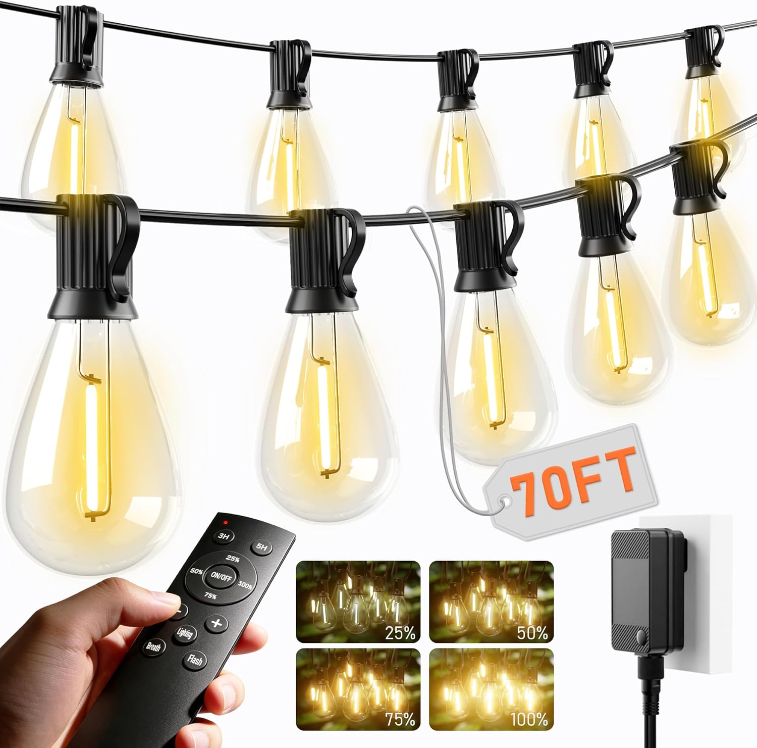 | Additional Features | Remote Control; 2700K Warm White; Dimmable; Waterproof; Shatterproof; 3 Lighting Modes, 3H/6H Timer |