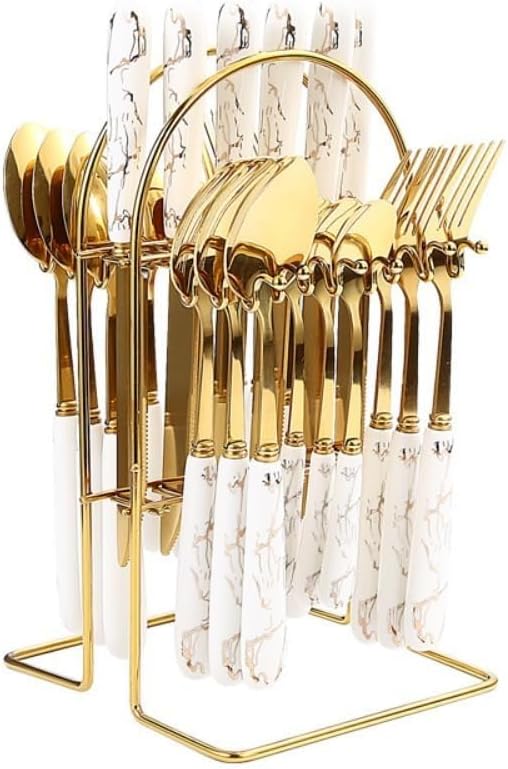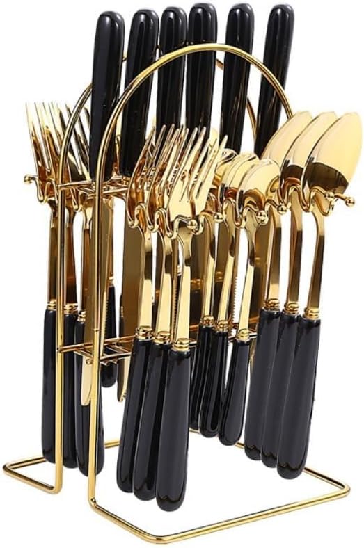 📦 Packaging quantity:6 knives, 6 forks, 6 spoons, 6 teaspoons, 1 cutlery rack 💕Instructions for use and maintenance💕 1. Wash carefully before first use to ensure there is no residue. 2. Clean and dry after use to ensure its durability. 3. Do not use rough and sharp materials to scrub the surface of stainless steel, stainless steel is very easy to scratch, scratching affects the beauty. So use a soft cloth. 4. Dishwasher safe so you can run it in the dishwasher to save your time. 💟Shopping Tips💟 1. Due to manual measurement, the size may have 1-2mm error. 2. There may be slight color difference due to different light of monitor and camera. 3. After receiving the package, please check whether the package is opened, whether the product is correct, if you find out of stock, wrong goods, defects and other problems, please contact us by [email], we will solve for you within 24 hours. 🤟We focus on kitchen table gadget design and constantly improve the quality, inspection and diversity of our products! Do our best to perfect and improve the quality of kitchen life! Meet the requirements and expectations of every customer!