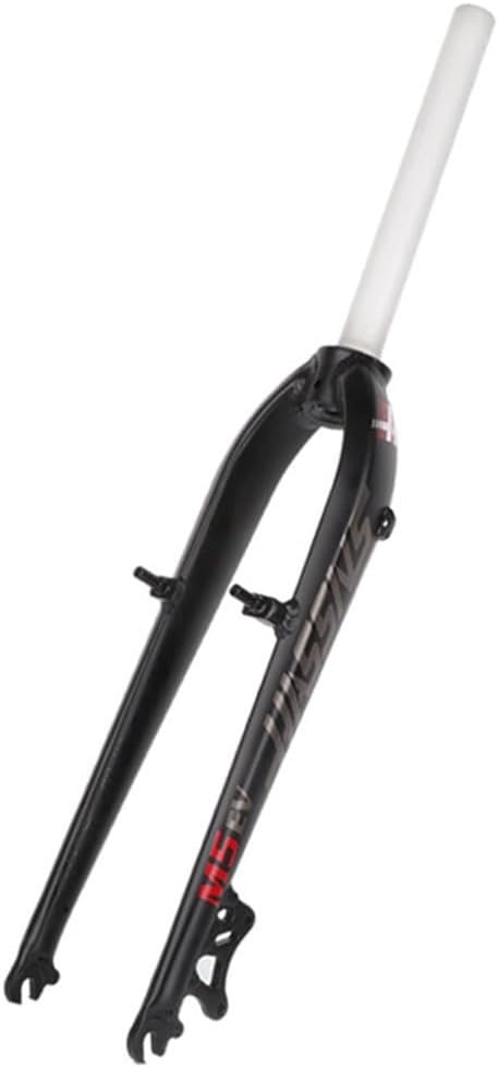 1-1/8" MTB Fork Threadless Straight Steerer Universal 26/27.5" Disc Brake V Brake MTB Front Forks Aluminum Alloy Super-Light Bike ForksInformation:Name: Rigid forkMaterial: 6061 aluminum alloySteerer size: 1-1/8"(Straight steerer tube threadless 28.6*250mm)Quick Release: 9x100mmSteer Tube Diameter:28.6mmSteer Length:250mmFor Tyre Size:26/27.5 inchWeight:Appro 825gBike Type: Mountain bikes, cyclocross and road bikesNote: The pattern on the rigid fork is printed and painted, not decals.Packaging:1*mountain bike rigid forkNOTE:1. Please check the size details in our list carefully according to the actual condition of your bike to make sure you buy the fit suspension fork.2. Due to different production batches, there may be slight differences in the color, appearance, shape, and details of individual parts.3. If you have any questions, please feel free to contact us, thank you!See more