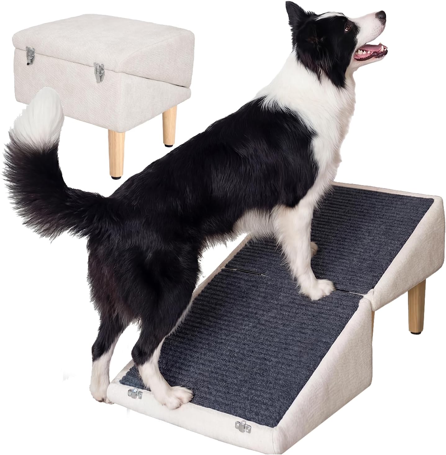 • 【3-in-1 Cozy Companion】 A dog ramp, hidden storage, and sturdy footstool all in one. Thoughtfully designed to save space while keeping your home warm and pet-friendly.