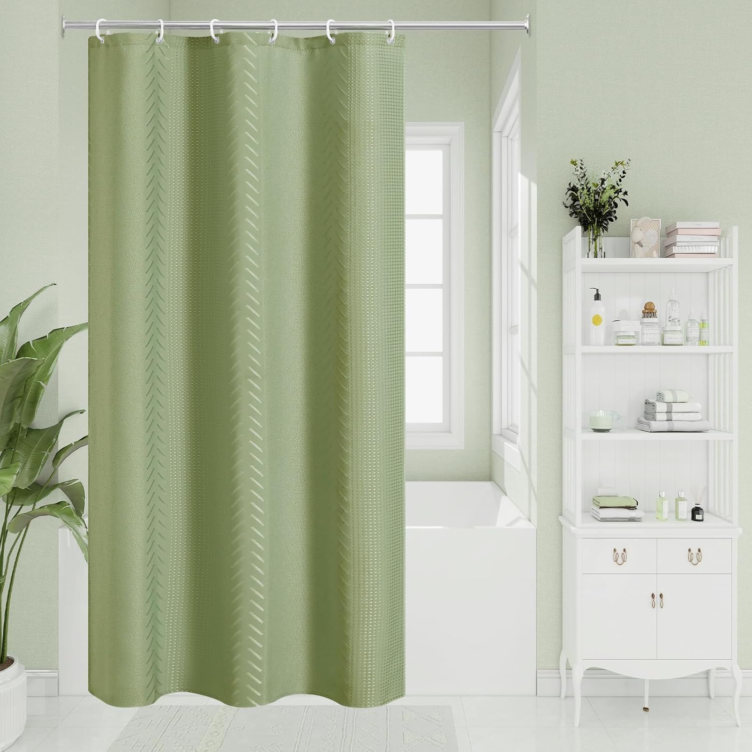 3D Embossed Pattern Shower Curtain, Simple and Chic Pattern Vintage Curtain for Bathroom, Waterproof Fabric Shower Curtains with Hooks, 72 W x 72 H, Sage