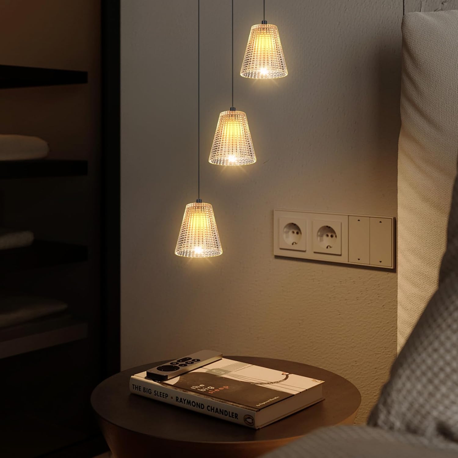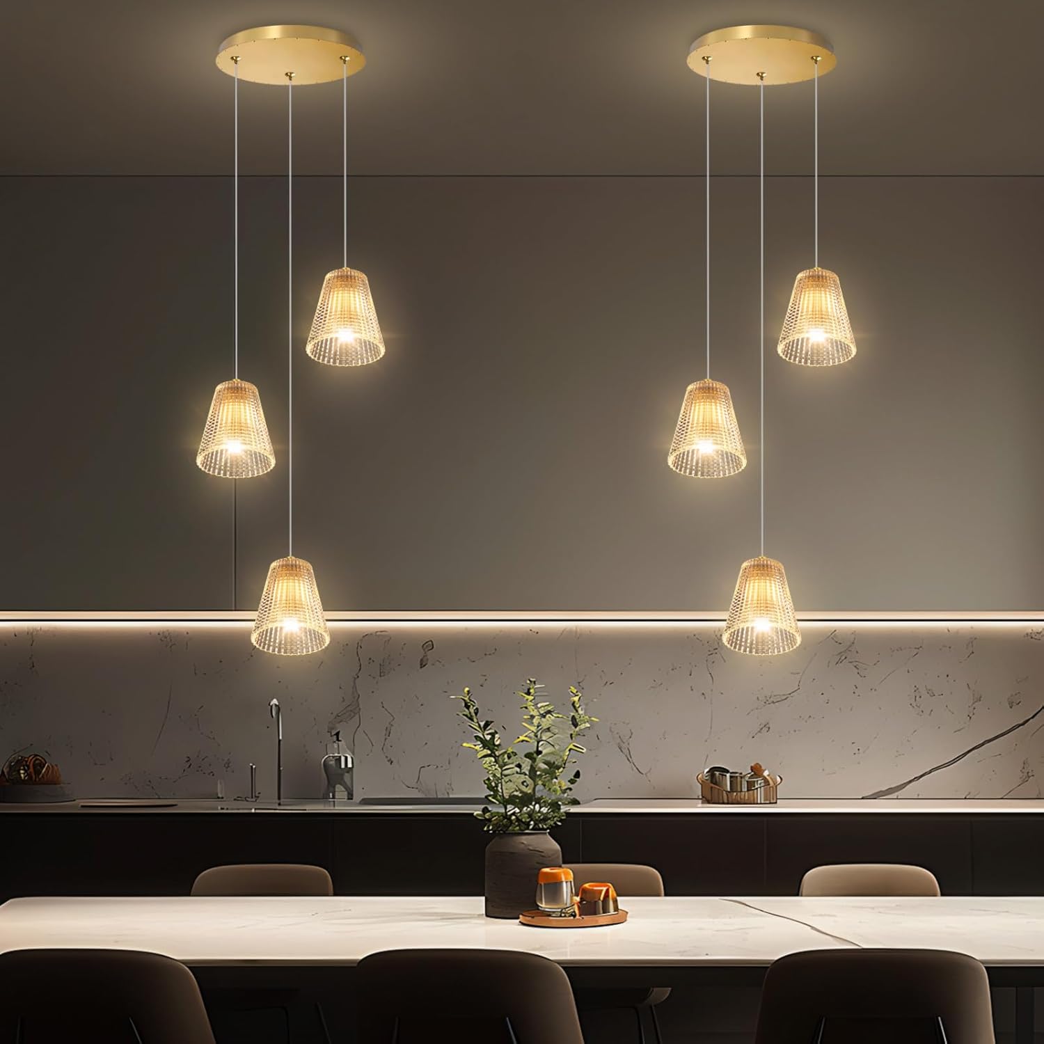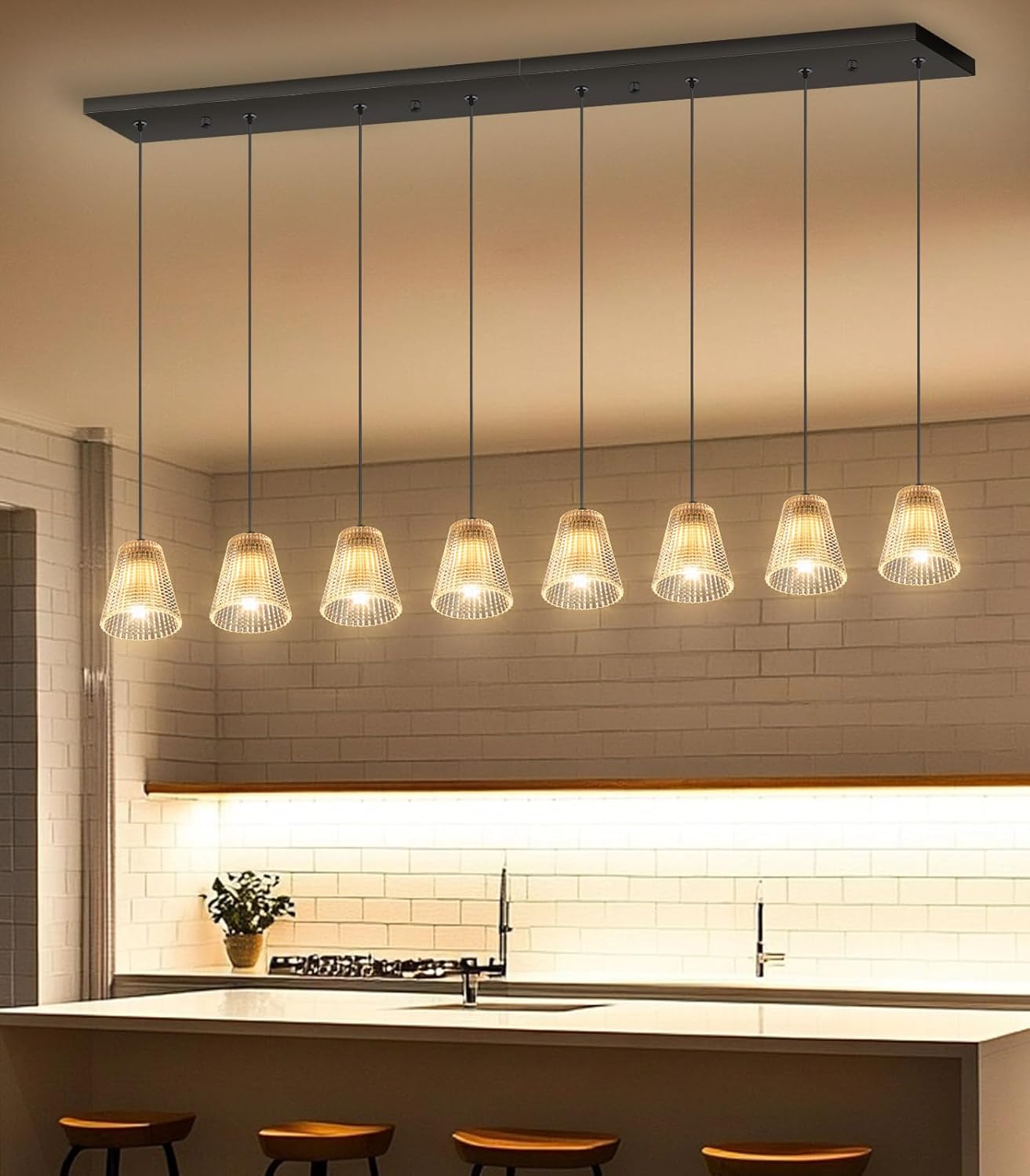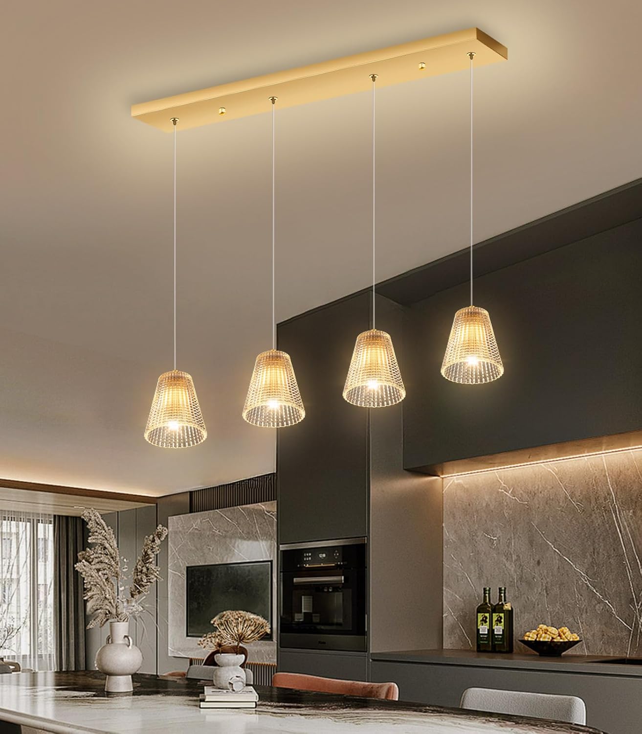 4-Light Modern LED Dimmable Chandelier Glass Rectangular Pendant Light Adjustable Height Pendant Lights Fixtures for Kitchen Island Living Room Foyer Silver