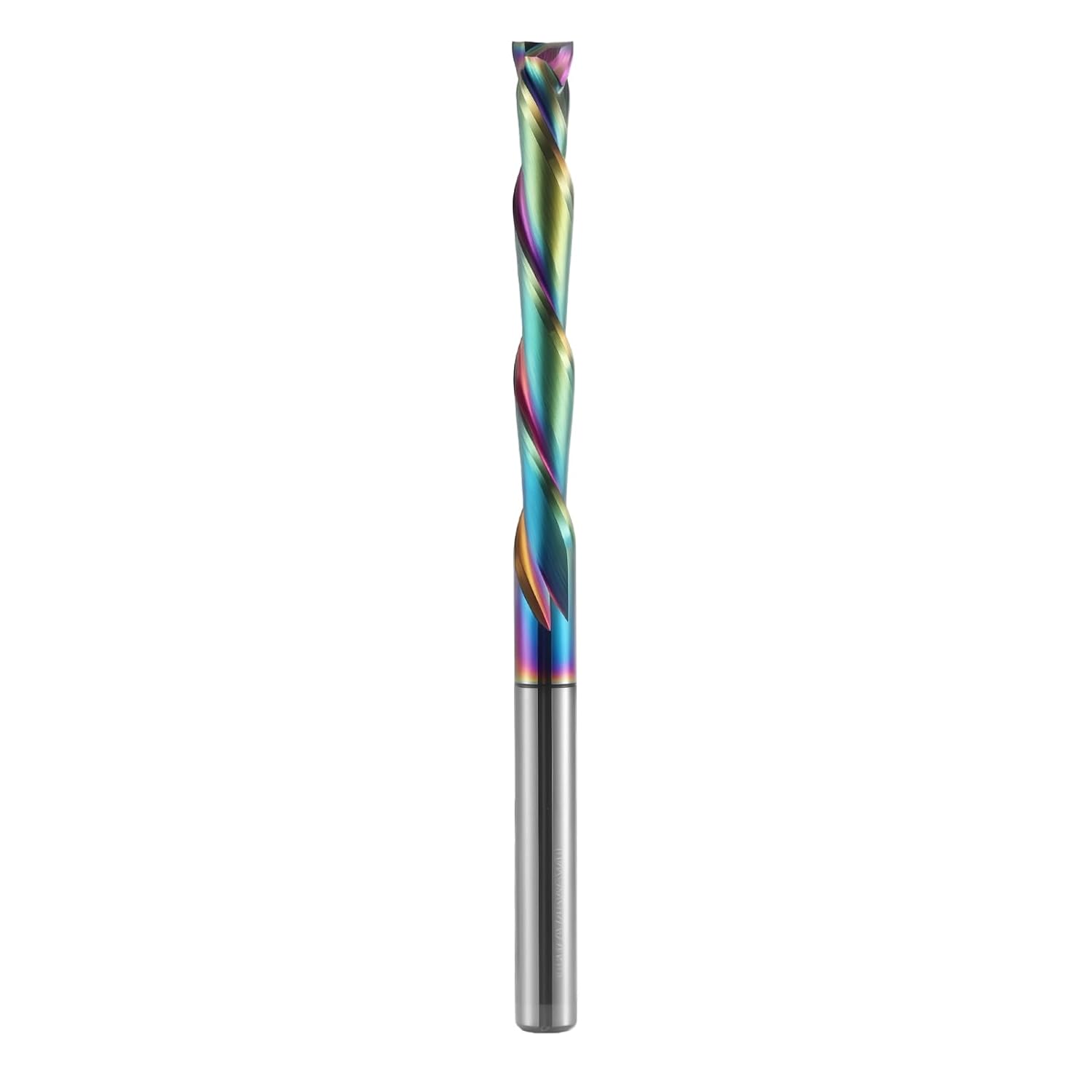 DLC-coated solid carbide compression bit combines up-cut and down-cut spirals in one tool, eliminating tear-out on both sides of plywood, laminates, and fine woods. The ultra-hard coating and sharp geometry enable faster, smoother cuts, superior chip removal, and exceptional tool life—ideal for CNC and handheld routing in cabinetry, sign-making, and detailed joinery.