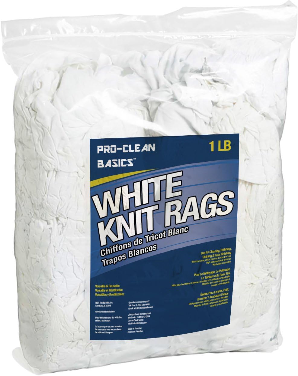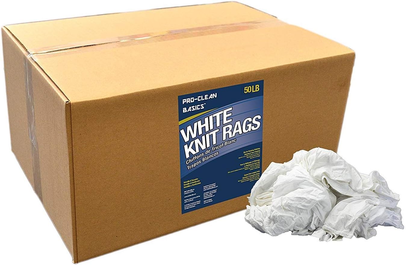 | Included Components | Jersey Cut White T-Shirt Rags, Pre-Washed & Lint Free, 16" x 16", 50lb. Box |
