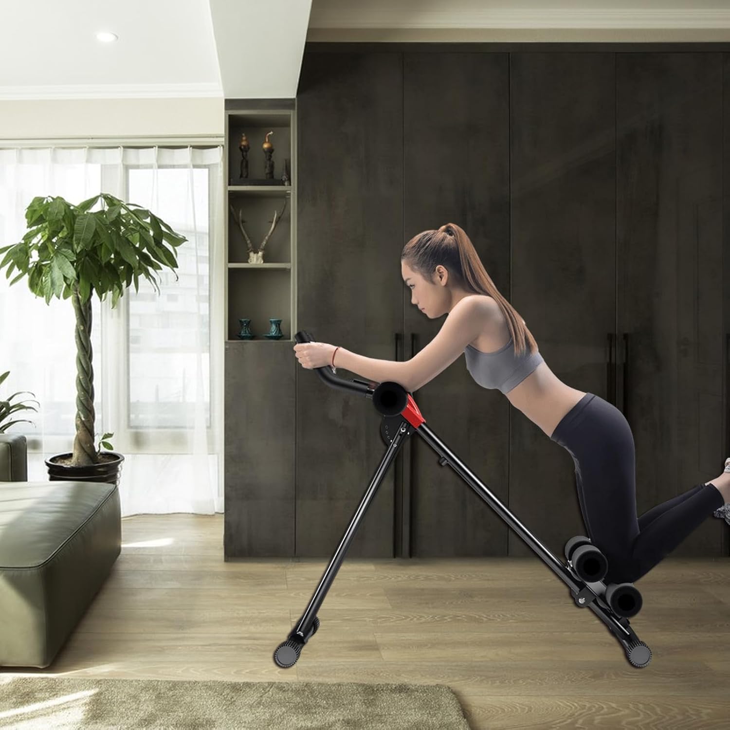 Descriptions:Full Body Ab Workout:This ab machine targets your abs and core with a bottom-up movement, burning belly fat and protecting your neck and back better than traditional crunches. It works your waist, abdomen, back, legs, and hips for a full-body workout.5 Adjustable Heights:Customize your workout intensity with 5 incline levels. Suitable for beginners to experienced users, this adjustable ab trainer meets all fitness levels.Stable Metal Frame:Made of thickened metal with a dual-track triangular structure, this abdominal machine supports up to 150kg, offering stronger stability than single-track designs.Easy to Assemble & Store:90% pre-assembled for quick setup. Foldable design saves space, so you can store it easily at home, office, or gym.Smooth & Smart Workout:Quiet sliding wheels and thick foam padding ensure a comfortable experience. The LCD monitor tracks reps, time, and calories to help you monitor your ab workout progress.Item Name: Abdominal RollerMaterial: MetalMax Bearing: 150kgSuggested Height: under 185cmFeatures: Dual-Track Frame, LCD Monitor, Wide Footrest FoamSize Details:Abdominal Roller: L: 91cm-136cm/35.85"-53.58", W: 40.5cm/15.94", H: 84.5cm/33.29" (Approx.)Pipe Thickness: 2.5cm/0.99" (Approx.)Package Includes:1 x Abdominal Roller (Wheels in Random Color)1 x User Manual