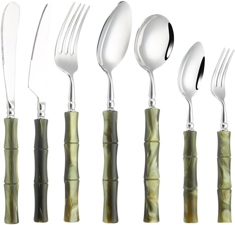 • 🎍Mirror polishing: The whole mirror polishing. Comfortable grip. Fine polishing makes the surface smoother and rounder, and you don’t have to worry about being scratched when using it! The unique thickened acrylic imitation bamboo handle design is different from ordinary tableware. Its exquisite appearance can be matched with your existing tableware to make your dining table unique!