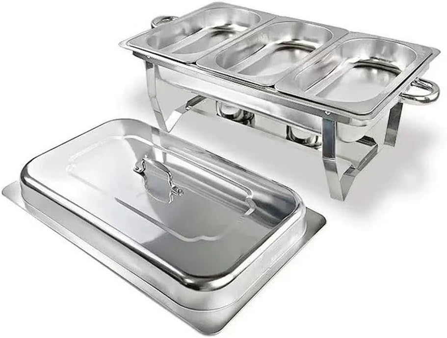 In the cold winter, a hot and delicious meal can warm our body and mind. The chafing dishes for buffet is an indispensable tool in this season. This chafing dish buffet warmers sets can keep the temperature of the food, allowing you to enjoy the food without worrying about it getting cold. Whether you having dinner with family or hosting a party with friends, this food warmers can bring you a comfortable and convenient dining experience.This chafing dishes for buffet is suitable for homes, kitchens, restaurants, buffets, hotels, canteens, snack bars, etc. It can keep French fries, rice, chicken, potatoes, pizza, and other dishes at optimal taste.SpecificationMaterial: Stainless SteelShape: RectangularPackage Included1* Chafing Dishes for BuffetNotes1. Please do not touch the surface while the dish is heating to avoid burns.2. Please allow the slight color difference caused by the shooting light and 1-3 cm error due to manual measurement.