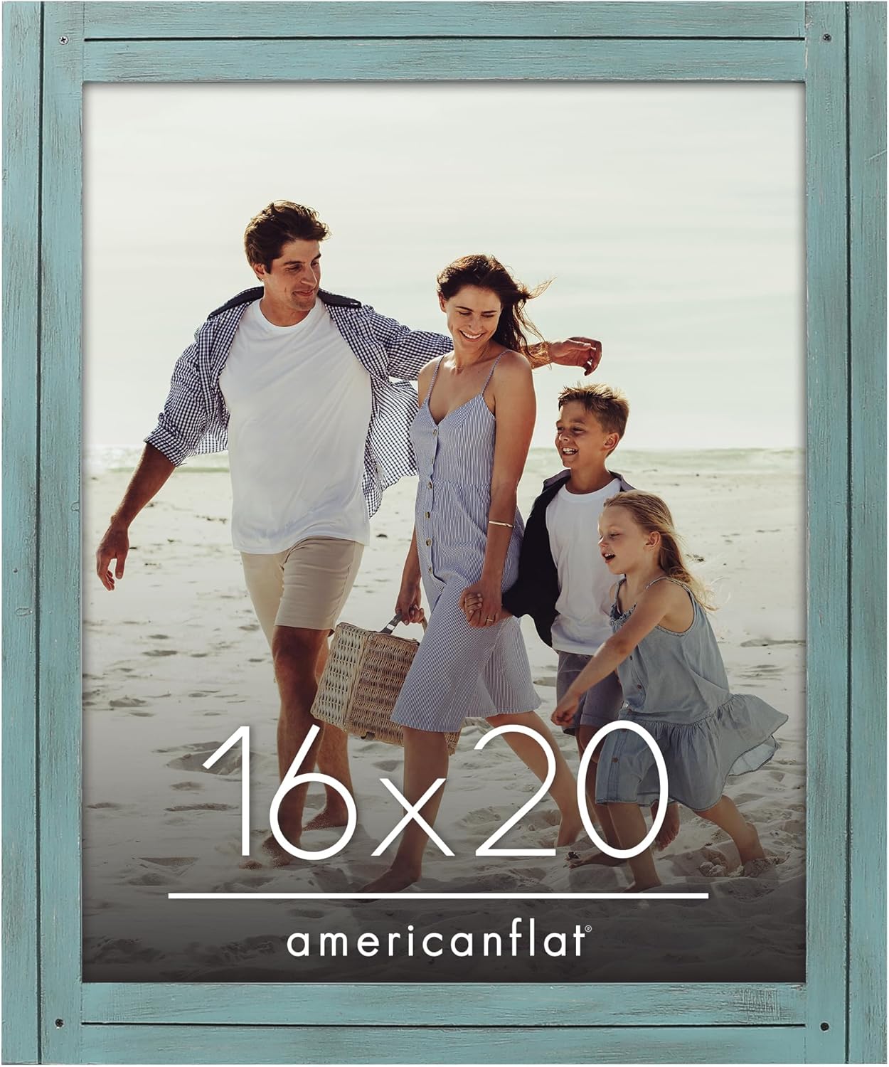 Give your memories the frame they deserve with our Americanflat 8x10 picture frame. This isn’t just a frame - it’s a statement piece. Featuring a distressed woodgrain-effect molding in a stunning navy blue (made of engineered wood), it adds the perfect rustic charm to your decor, making it ideal for family portraits, vacation snapshots, or those unforgettable moments you want to showcase. The polished, crystal clear glass provides clarity while protecting your photos, posters, or artwork from dust and scratches. Because the memories that mean the most should have the best. Versatility meets style with this collage frame. Hang it vertically or horizontally using the included hanging hardware, or use the easel stand for a tabletop display. No matter how you choose to display it, the frame adds a timeless touch, instantly elevating your home or office decor. Refreshing your display has never been easier. The easy-to-use metal tab closures make swapping photos a breeze, so you can update your walls as often as you like. Plus, the sturdy backboard keeps everything securely in place, ensuring your memories always look good. Why settle for boring walls when you can have a gallery at home? This photo frame is built to last, combining style and functionality to create keepsakes you’ll treasure forever. Order yours today and join thousands of satisfied customers who’ve transformed their spaces with Americanflat.