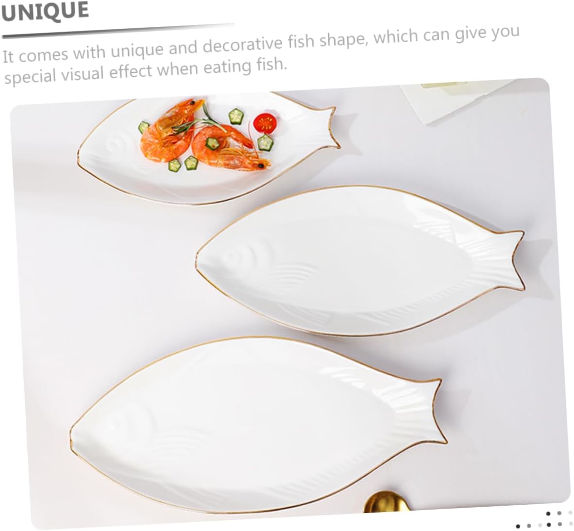 Amosfun Ceramic Fish Plate Gold Trim Decorative Fish Shaped Dish Serving Tray for Appetizers and Snacks Elegant Tableware for Parties Banquets and Home Use