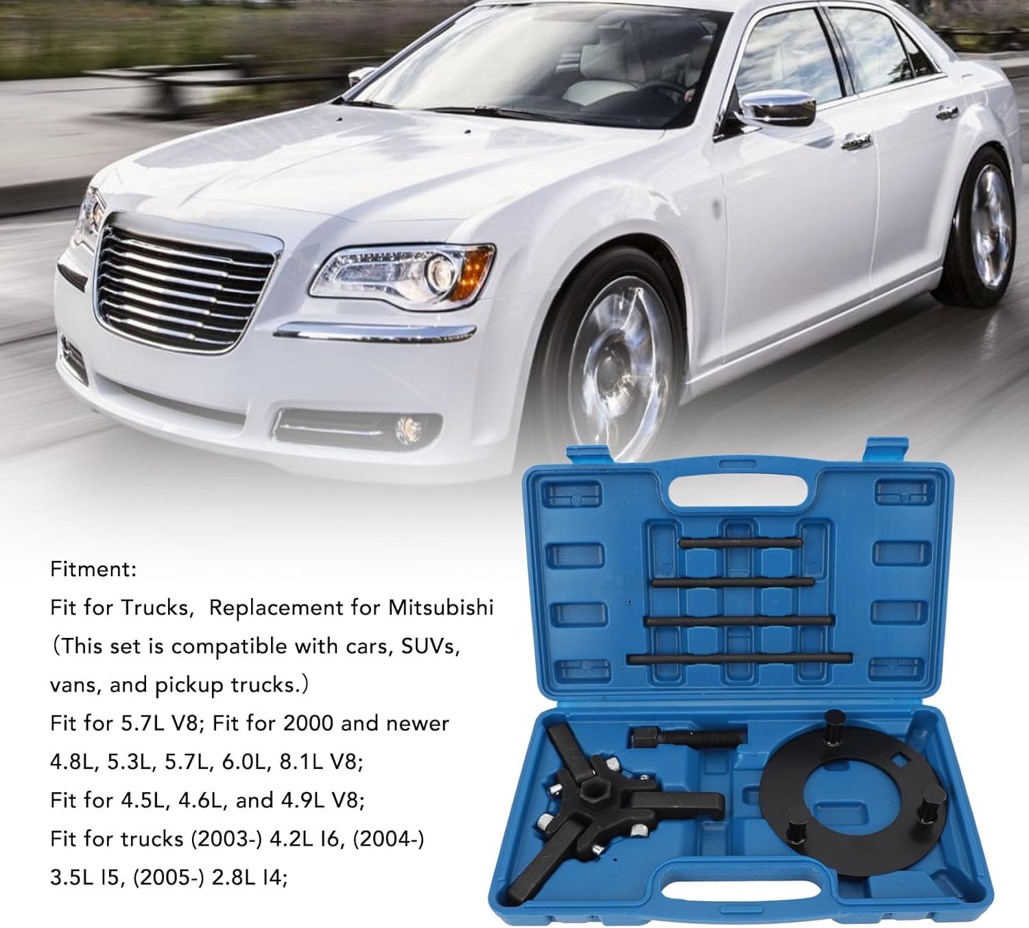 Item Type: Harmonic Balancer Puller SetMaterial: Carbon SteelPressure Rod Size: 100 mm (3.94 in), 135 mm (5.3 in), 165 mm (6.5 in), 185 mm (7.28 in)Fitment:Fit for Trucks, Replacement for )This set is compatible with cars, SUVs, , and pickup trucks.)Fit for 5.7L V8; Fit for 2000 and newer 4.8L, 5.3L, 5.7L, 6.0L, 8.1L V8; Fit for 4.5L, 4.6L, and 4.9L V8; Fit for trucks (2003-) 4.2L I6, (2004-) 3.5L I5, (2005-) 2.8L I4; Fit for(1995-) V8 engine; Replacement for Eclipse (1995 - ) 2.0L DOHC non-turboPackage List:1 x Harmonic Balancer Puller Kit (7pcs)1 x Blow Molded Box