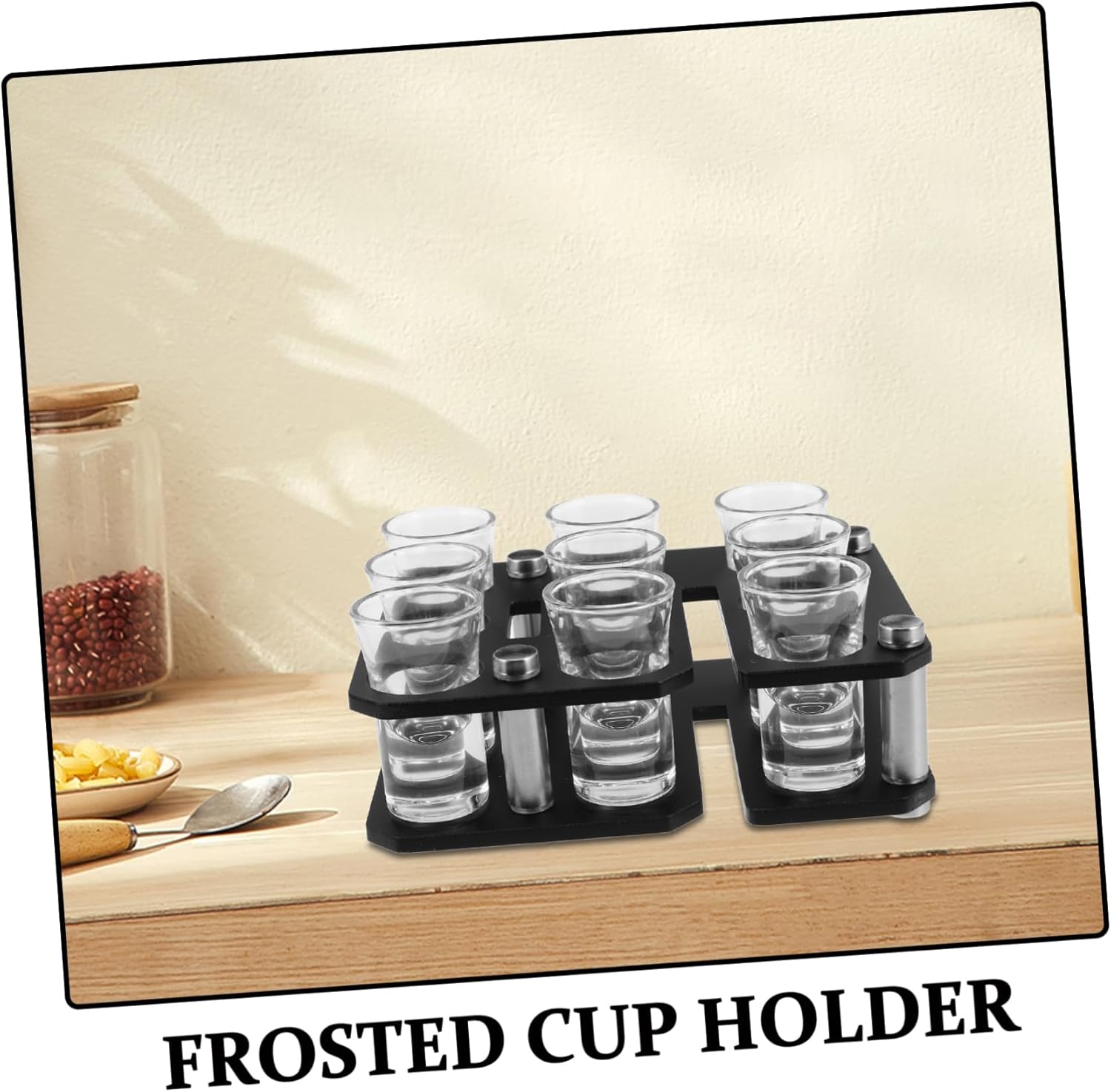 Package Include 1 Glass Tray with 9 Glass Cup Features -Material:Plastic,Stainless steel,Glass bar tasting serving tray -Creative design: unique DIY cup holder adds a touch to your bar or ktv, making it stand out with its innovative design beer glass organizer -Frosted cup holder: features a frosted finish, providing a smooth surface, comfortable grip, and antislip cup holder tray for servers -Color: glasses holder -Multifunctional combination: includes cup holder, bar cup holder, and shot glass holder, catering to various beverage needs shot holder stand - glass material: made from glass, this cup holder is and easy to clean, ensuring it remains condition party serving holder for bar -Easy assembly: designed for effortless assembly, making it convenient to set up and use in any setting cocktail serving tray -Size:15.00X11.70X7.00cm/5.89X4.60X2.75in shot glasses standGoods Informationshot glasses holder Its sleek design not only adds a touch of elegance to your drink presentation but also that your shot glasses are organized and easily accessible.countertop wine rack This DIY creative acrylic cup rack set is for bars, KTVs, and home parties.cocktail cup holder The frosted cup holder is designed to securely hold shot glasses, making it an for serving cocktails, shots
