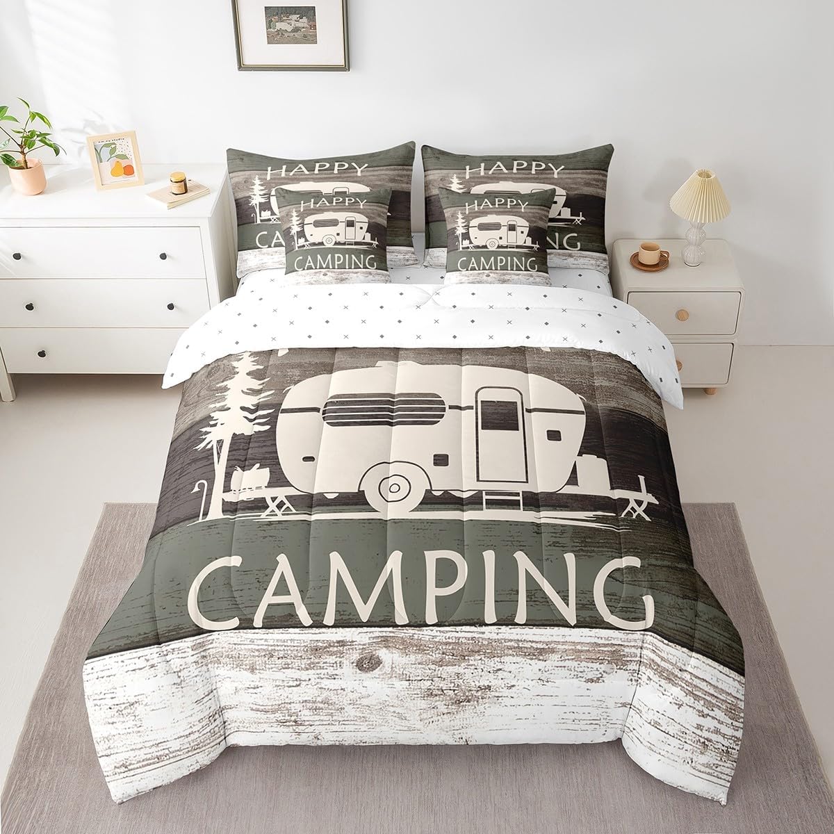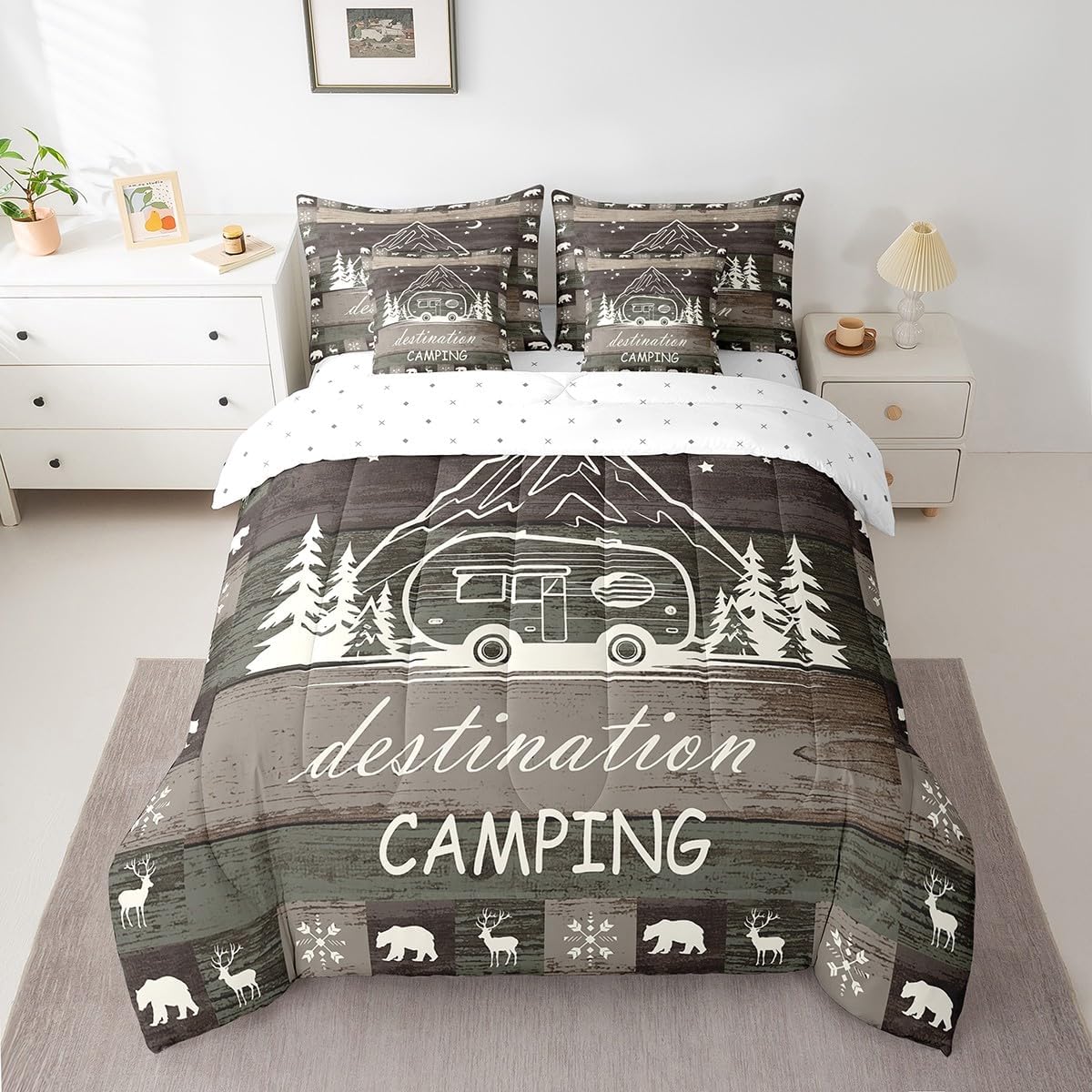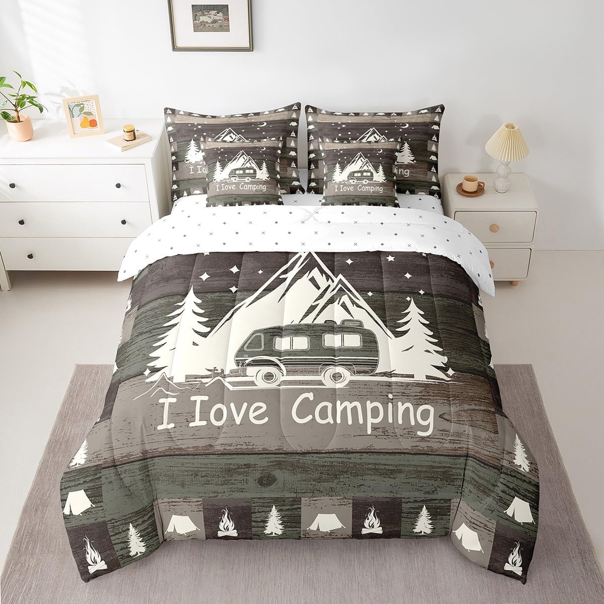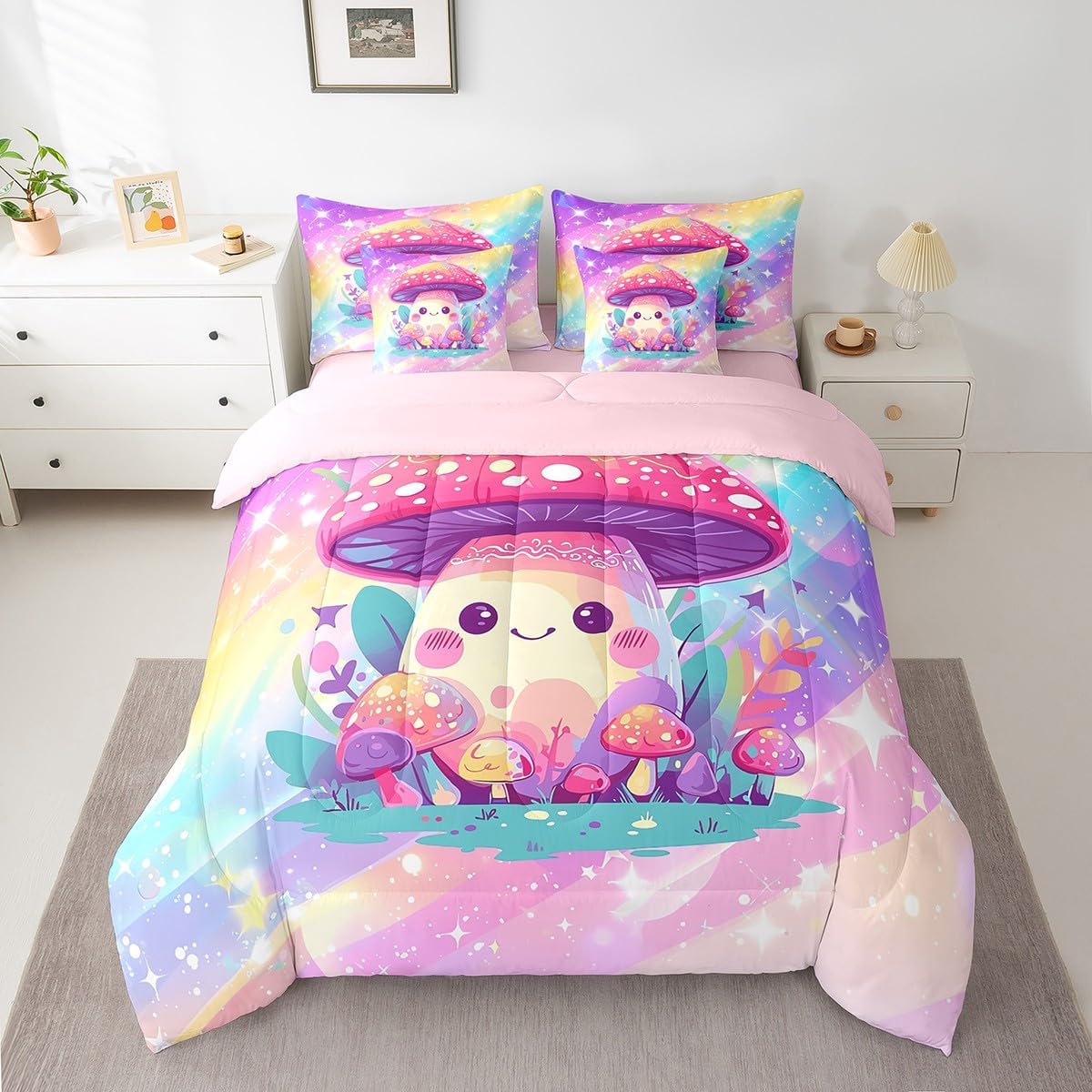 Welcome to our store. Size information: Twin size: 1 Comforter 68"W x 90"L and 1 Fitted Sheet 39"W x 75"L x 16"H and 1 Flat Sheet 67"W x 96"L and 2 Pillowcases 20" x 30" and 2 Throw Pillow Covers 18" x 18" . Full size: 1 Comforter 79"W x 90"L and 1 Fitted Sheet 55"W x 75"L x 16"H and 1 Flat Sheet 81"W x 96"L and 2 Pillowcases 20" x 30" and 2 Throw Pillow Covers 18" x 18" . Queen size: 1 Comforter 90"W x 90"L and 1 Fitted Sheet 60"W x 80"L x 16"H and 1 Flat Sheet 90"W x 102"L and 2 Pillowcases 20" x 30" and 2 Throw Pillow Covers 18" x 18" . King size: 1 Comforter 104"W x 90"L and 1 Fitted Sheet 78"W x 80"L x 16"H and 1 Flat Sheet 90"W x 106"L and 2 Pillowcases 20" x 36" and 2 Throw Pillow Covers 18" x 18" . Useful and practical: A luxurious product for homes,dorm rooms,hotels,guest rooms.Practical to use for being polyester, feels like cotton which is super soft and breathable.No chemicals used, no dye substance harming the health of you or your family. Unique design: Vivid Colors won't fade thanks to new 3d digital printing methods. These unique designs match well with various color palettes of your rugs, curtains, headboard, furniture, and all other decor accessories. Washing instructions: Machine wash it in cold water without bleach,and tumble dry on low heat to restore its freshness and appearance. Notes: Due to the light and screen setting difference, the item's color may be slightly different from the pictures. Due to manual measurement, there may be an error of 1-3 centimeters.