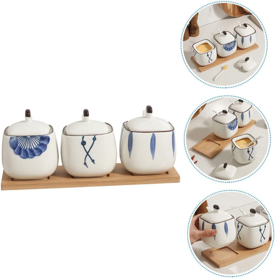 Package List 3 x Spice Jars 3 x Spoons 1 x Tray Characteristics -Size:9.00X2.00X1.00cm/3.54X0.79X0.39in(Spoon) sugar container with spoon -Color:Assorted Color sugar container -Size:10.70X8.20X8.20cm/4.21X3.22X3.22in(Spice Jar) seasoning containers -Size:28.50X9.50X1.50cm/11.20X3.73X0.59in(Tray) salt container with lid and spoon -Material:Ceramic, holder with lid -Space saving and easy to carry, for home use as well as outdoor BBQ grill salt bowl. -The Spice Jar will be a helper soon when you need to take advantage of it for a long time in one way salt jar. -Simple but fashionable, fits kitchen, decorating your cooking and dining environment salt container with lid. -Equipped with spoons, and it is convenient for you to scoop seasonings, very and convenient spice storage jar. -Constructed by using material, it safety and can use it with container with spoon.Goods Informationcontainer with spoon Come it home!. bowls with lid This spice storage jar is made of ceramic and materials and , this jar is suitable for storing your condiments, for kitchen use.small sugar container Share this Seasoning Jar set with your family because it is .sugar container for coffee bar Fine workmanship and styles
