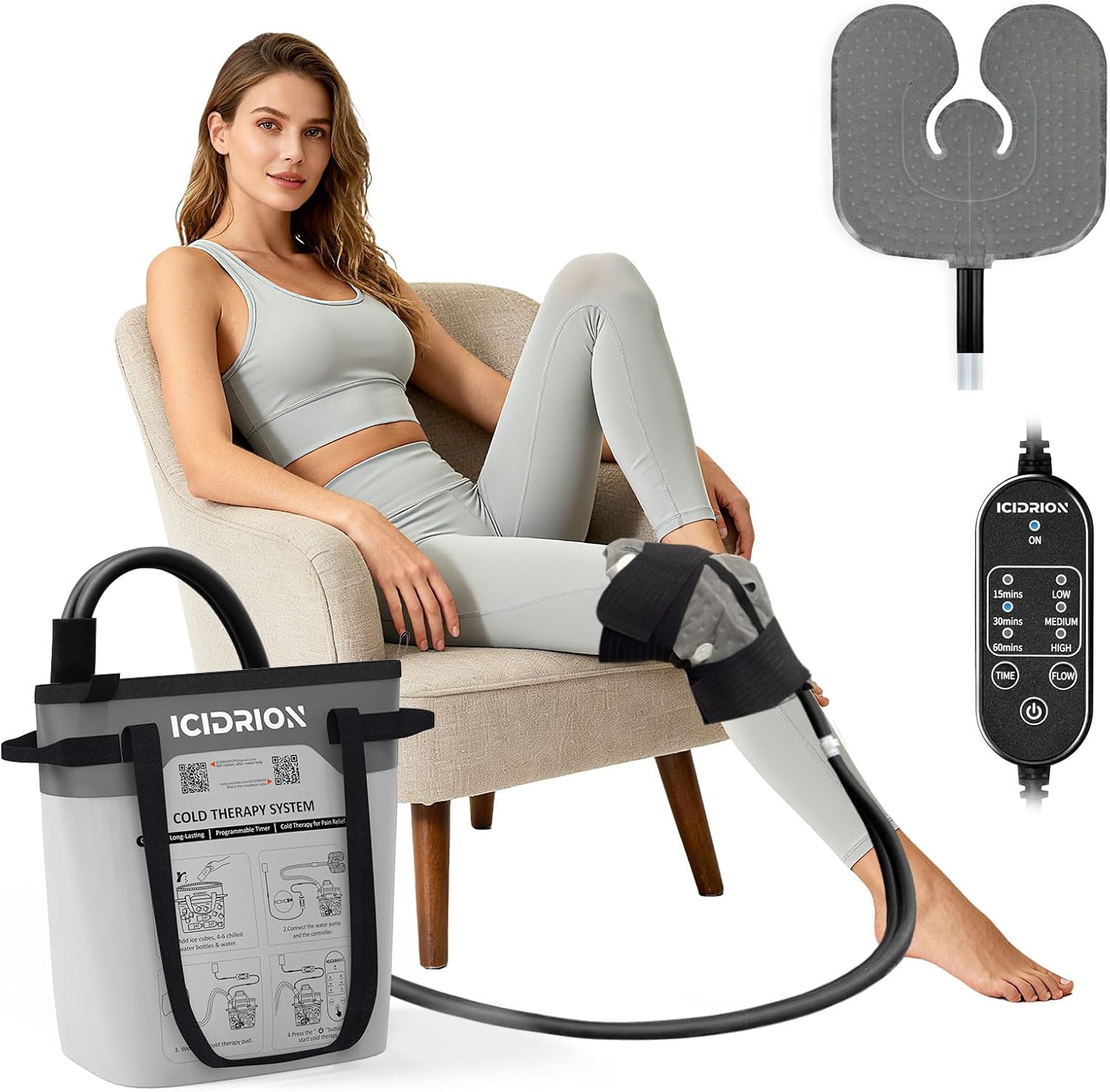 • PERSONALIZED CRYOTHERAPY: Easily tailor your cold therapy with the ICIDRION Knee Ice Machine, with continuous running mode or 3 timer settings (15/30/60 min) and 3 flow rates (low/medium/high). Whether you need a short session or extended relief, personalize treatment to match your comfort level and recovery needs.