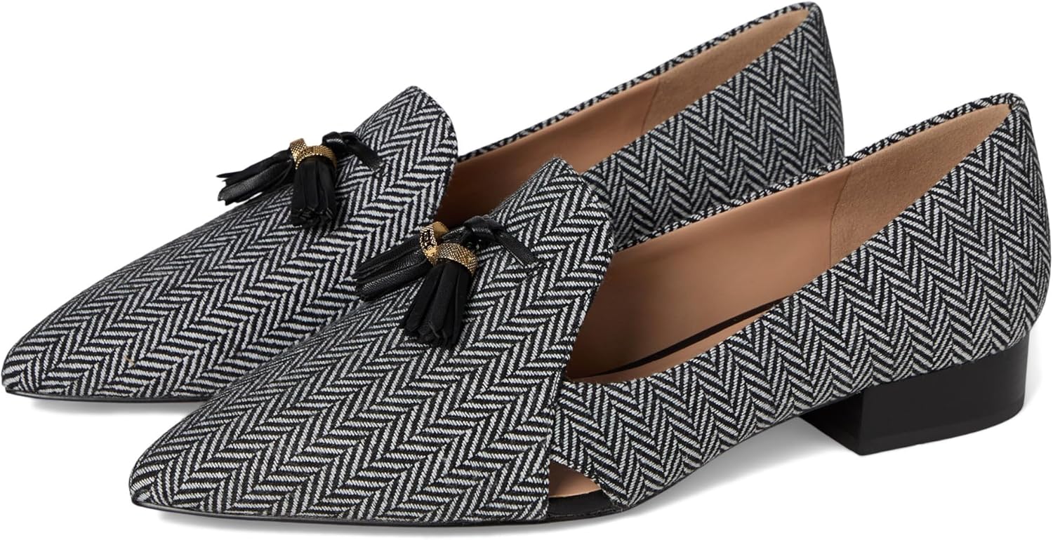 Loafer silhouette with front tassel detail. CH branded tassel hardware caps. Cut out detail on the sides of the upper. Fully padded foam sock liner for added comfort. Pu vamp and sock lining. Buffed Synthetic Outsole that contains 32% recycled rubber content with weave laser design at forepart for traction. 25 mm heel height.