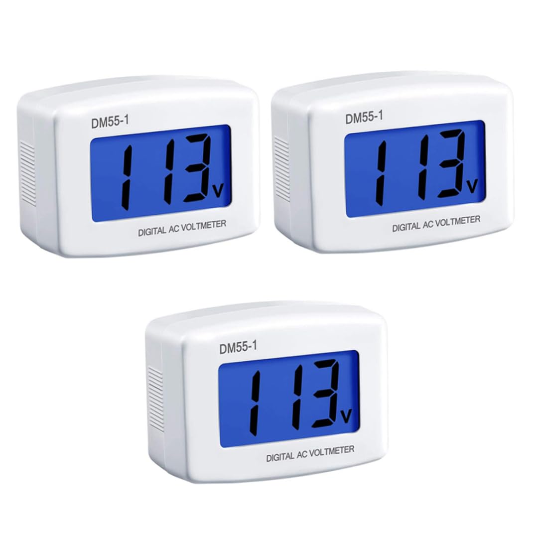 Description This voltmeter built in an interior potentiometer for accuracy adjustment. It is for more than just measuring voltage, with its soft blue back light feature, it can be also applied as a light for night and a simple electrical test pen, while enabling you to view the data even in dim atmosphere. Can be widely applied in AC 80-300V mains measurement, such as office, factory, laboratory, household and so on. Features Digital voltmeter -Color: White. -Material: Plastic. -Size: 5.3x3.8 cm/2.09x1.50 inch. Measuring accuracy: +/-1.5%, +/- 2 word Measuring range: AC 80 - 300V (110V, 220V) Consume power: less than 1W (about every 1200 hours consume 1 kilowatt-hour) Plug style: US plug Number of digits: 3 digits NOTE: Please keep the children away from the product and do not use the product in a damp environment. Potentiometer adjusting method: Please use the screwdriver to open the outer case of the voltmeter. Then adjust the potentiometer with small size screwdriver. If the displayed voltage is too high, please adjust potentiometer counter-clockwise. If the displayed voltage is too low, please adjust potentiometer clockwise. Application: You can use this item in RV as a way to view voltage to prevent issues with appliances. You can use this item to detect the voltage of other appliances; when this volt gauge displays too high or too low voltage, you can selectively turn off your appliances or equipment so as to prolong the life of your appliances. Package Including 3 * Digital voltmeter
