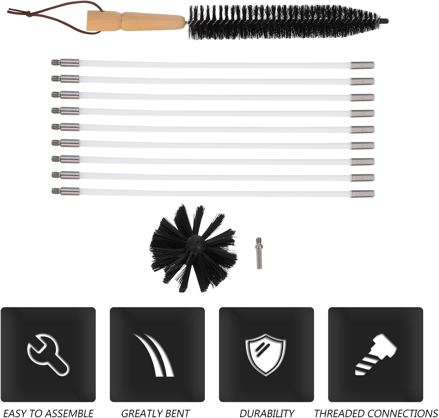 Package List 9 x Chimney Rods 1 x Head 1 x Wooden Handle Brush Characteristics - Material: Nylon + Iron Wire. - Rod Size: 41.00X1.00X1.00 cm/ 16.14X0.39X0.39 inch. - Size: 38.50X4.00X4.00 cm/ 15.13X1.57X1.57 inch. - Brush Head Size: 10.50X10.00X6.00cm/ 3.93X4.13X2.36 inch. -Product Info:Pipe cleaning brush - cleaning up lint and dust in dryer vent, duct and exhaust port chimney cleaning kit chimney brush. - The rods are flexible which can perfectly get through those tough flue bends vent cleaner. - It can be used with or without a power drill and will help you achieve professional results Chimney Brush. - It is works well for getting rid of built up chimney soot and ash, convenience and practical stove pipe brush. - Made of , easy to install, simple in structure, fine workmanship. - Goods Descriptionchimney sweep rods If you are looking for professional chimney cleaner, then your research is here.Dryer Vent Cleaning Brush It is made of and craftsmanship, and practical, and can provide you with stable working performance.dryer vent cleaning kits That's because our products can meet your needs