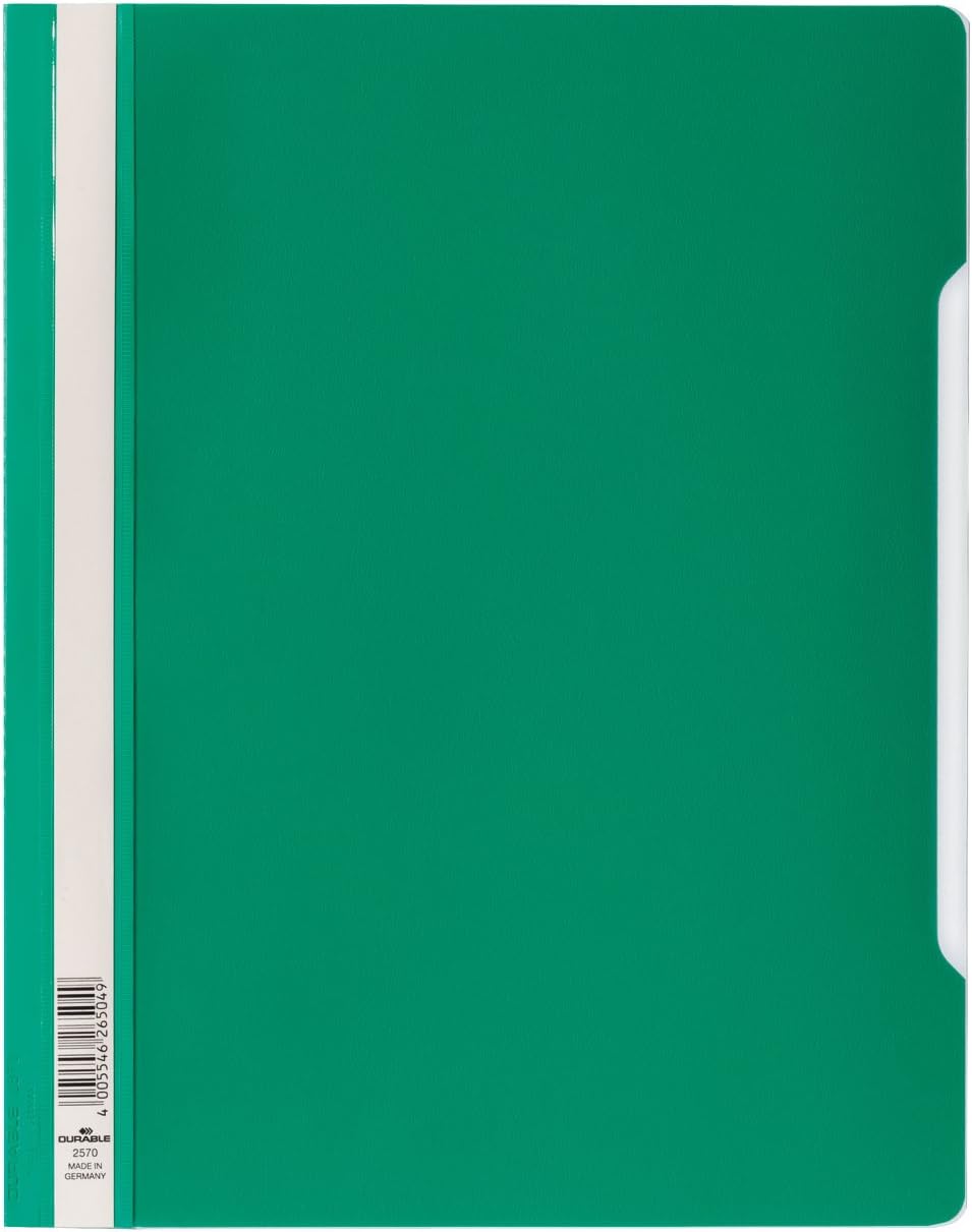 Product Description Durables original Clear View folder made from copy safe anti-glare polypropylene. The folder features a transparent front cover, and full length label holder for organisation. The rear cover is recessed for easier page turning and includes a 8cm filing bar for punched paper.Can be combined with Durable 299602 for filing in lever arch files and ring binders.Dimensions (W x H): 245 x 310 mmExtra wide A4 format suitable for punched pockets Set Contains: 50 x Durable Clear View Folder/Report File A4 (Extra Wide) in Blue