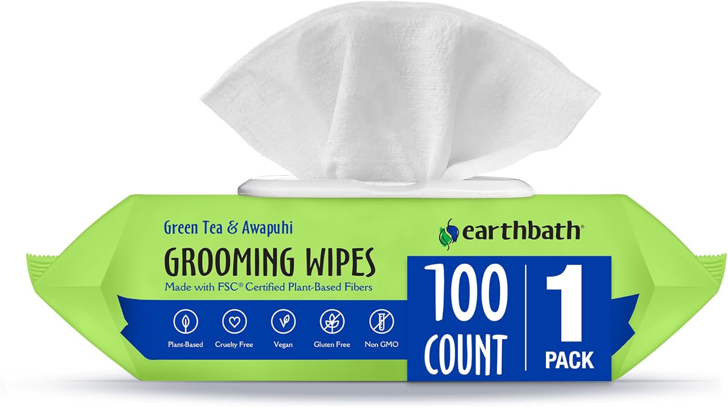 Pet Care with Purpose: Paul Armstrong founded Earthwhile Endeavors, Inc. in 1995 after a chance encounter with three buddies in San Francisco who had developed a natural, effective pet shampoo but didn’t know what to do with it. Well, Paul knew a great product when he saw one (as did his cat Miles), and he was determined to share it with pet lovers everywhere.Hypo-Allergenic Grooming Wipes: Use these thick, large, moist wipes as a touch up grooming solution or as a bath alternative. They contain only natural cleansers and conditioners, including exotic Hawaiian Awapuhi extract, a shine enhancing coat conditioner. Notice how soft your hands are after wiping your pet. Safe for daily use on all animals over 6 weeks old.Earthbath's Product Philosophy: At Earthbath, we design all of our products with the health of your fine-furred friend in mind. Our pets are our “kids,” our best friends & our cuddly bedmates all rolled into one fun-filled furry package, and we think they deserve only nature’s finest blends of cleansing potions and sumptuous, effective essences.Know What You're Getting: Earthbath shampoos are cruelty free and made in the USA with natural and organic ingredients and no artificial colors. And, we never use soap in our shampoos, which can dry skin and remove necessary skin oils.Your Safety and Your Pet's Safety is Our Priority: Avoid contact with eyes. Product is solely intended for use on coat and skin. Flush thoroughly with clean water if eye contact occurs. Keep out of reach of children. If swallowed (by humans), consult a physician.The Earthbath Promise - We are so sure you will love this product that we will refund your money within 30 days of purchase date if you are not satisfied for any reason. You have nothing to lose!