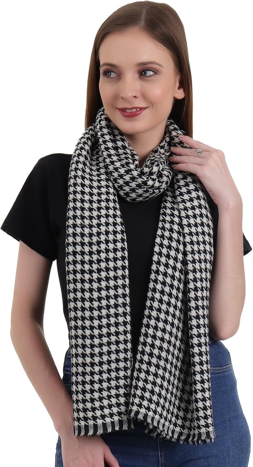 100% GRADE A 3PLY CASHMERE, HANDLOOMED IN KASHMIR INDIA, HOUNDSTOOTH PATTERN IN TWO TONE COLORS, LARGE, BUTTERY SOFT, LIGHT WEIGHT, SUPER WARM SCARF, STOLE, WRAP.