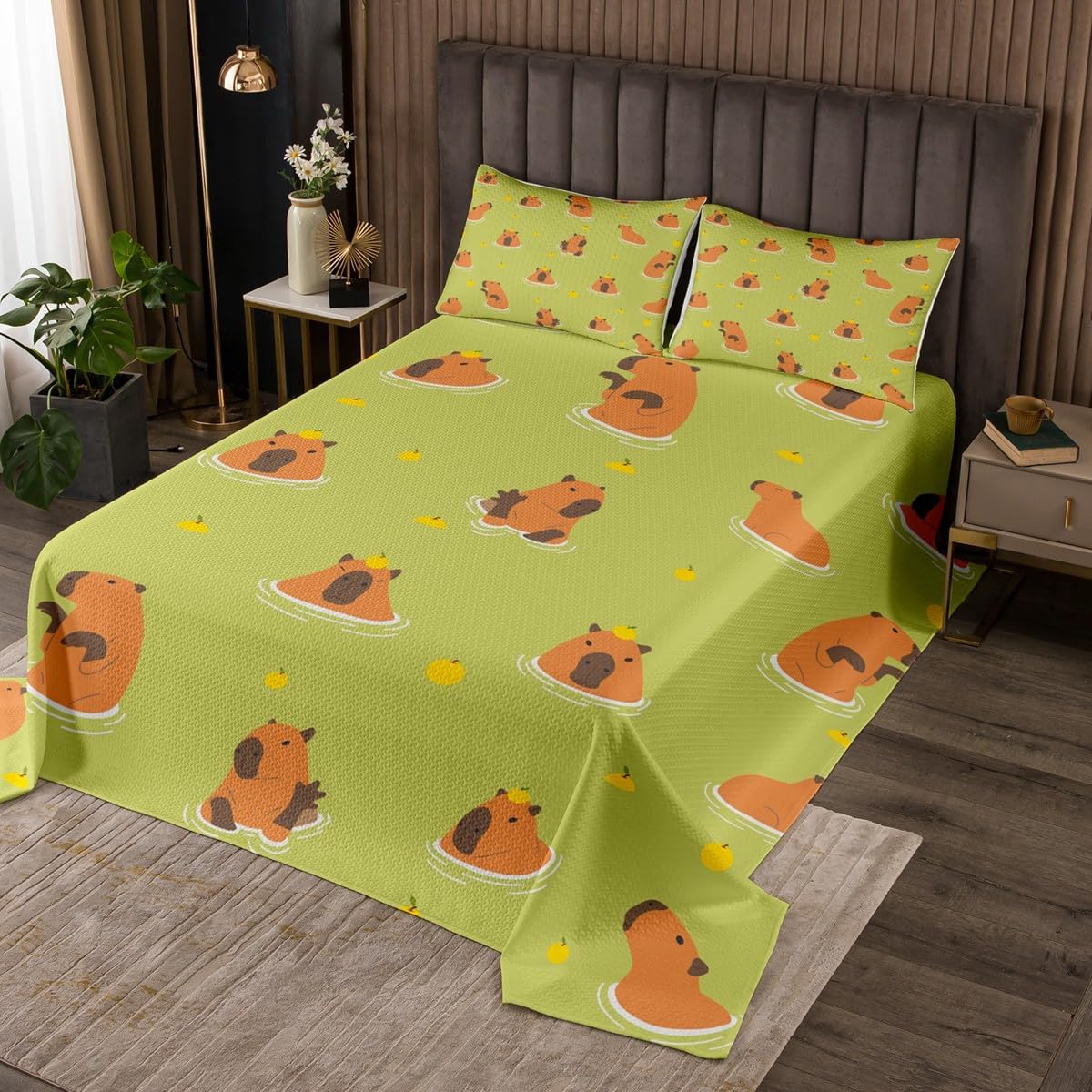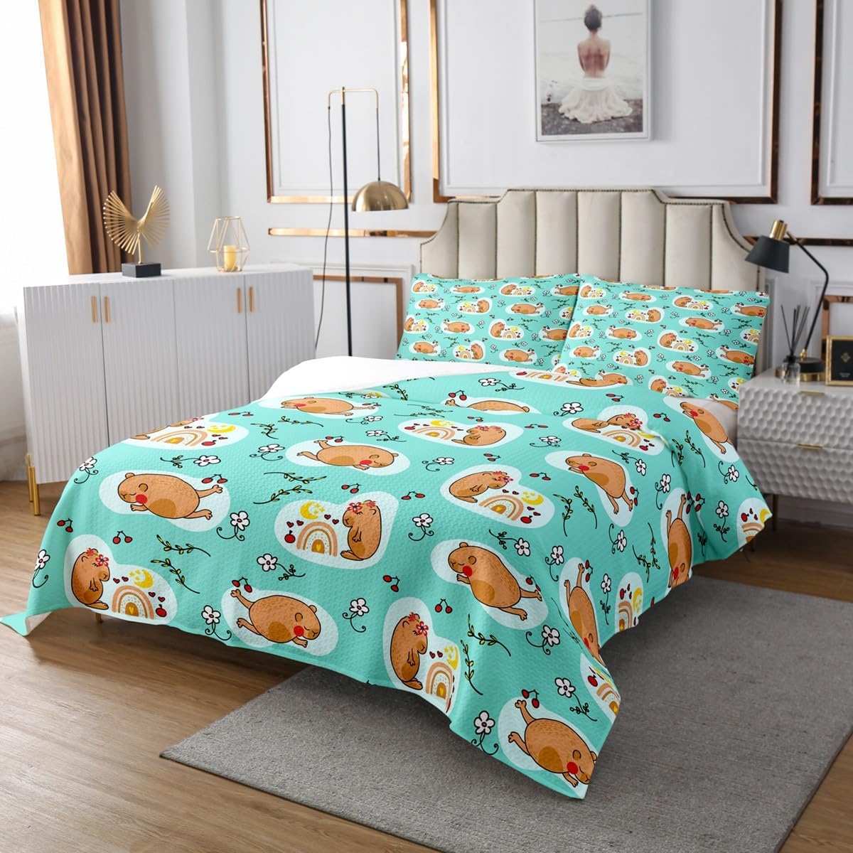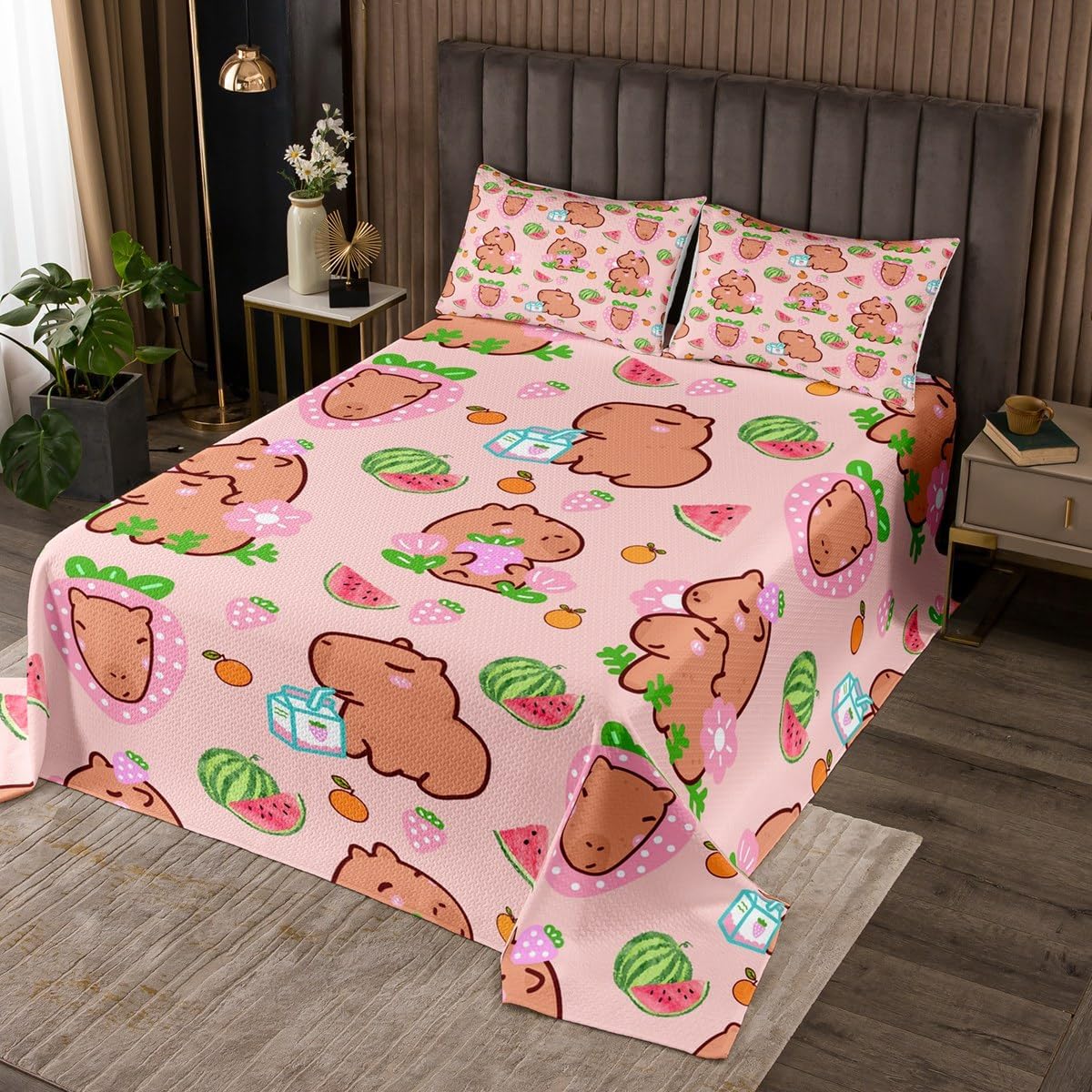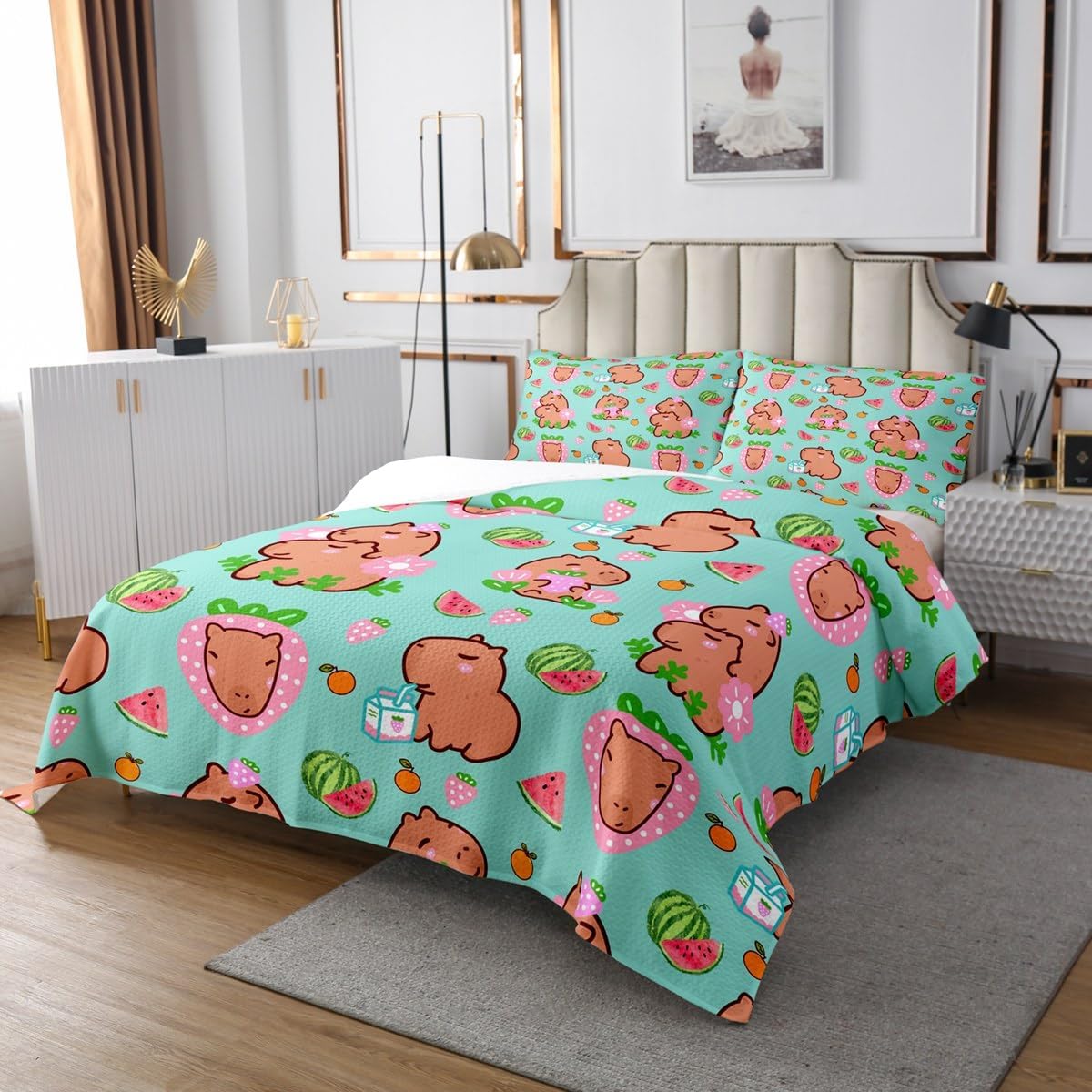 Size information: Twin size include 1 quilted bedspread(68"Wx90"L) and 2 quilted pillow shams(30"Wx20"L) Queen size include 1 quilted bedspread(90"Wx90"L) and 2 quilted pillow shams(30"Wx20"L) King size include 1 quilted bedspread(104"Wx90"L) and 2 quilted pillow shams(36"Wx20"L) Makeover your bedrooms all season with this bedspread set: A quilt set for home dorm room decor for kids teen girls boys youth.practical to use for being polyester,feels like cotton which is soft and breathable Vivid colors won't fade thanks to new 3d digital printing methods.these novelty designs coverlet set match well with various color palettes of your other home decorations Expertly crafted with digital printing technology, these home textiles feature the trends in contemporary home fashion. Either to your friend or to yourself,the item is funny and interesting Please note: The bedspread and pillow shams are printed on the front side only,the back of bed set bedding set are white colored.comforter is not included in the set