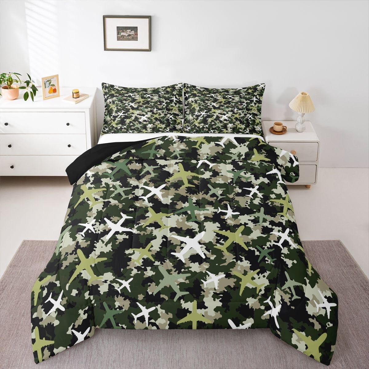 Feelyou Green Camouflage Bedding Set Toddler Size for Boys Teens Adults Camo Hunting Comforter Set Rustic Camping Cabin Bedspread,Country Farmhouse 1 Comforter 1 Pillowcase