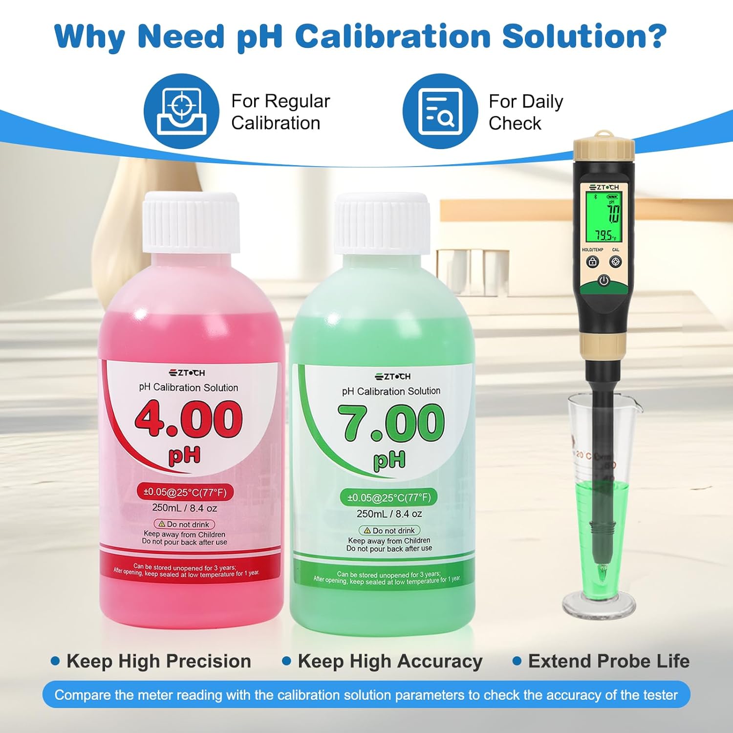 EZTOCH Food pH Meter for Canning with pH 4.00 pH 7.00 Calibration Solution Each 8.4oz /250ml, pH Tester for Dough, Brewing, Fermentation