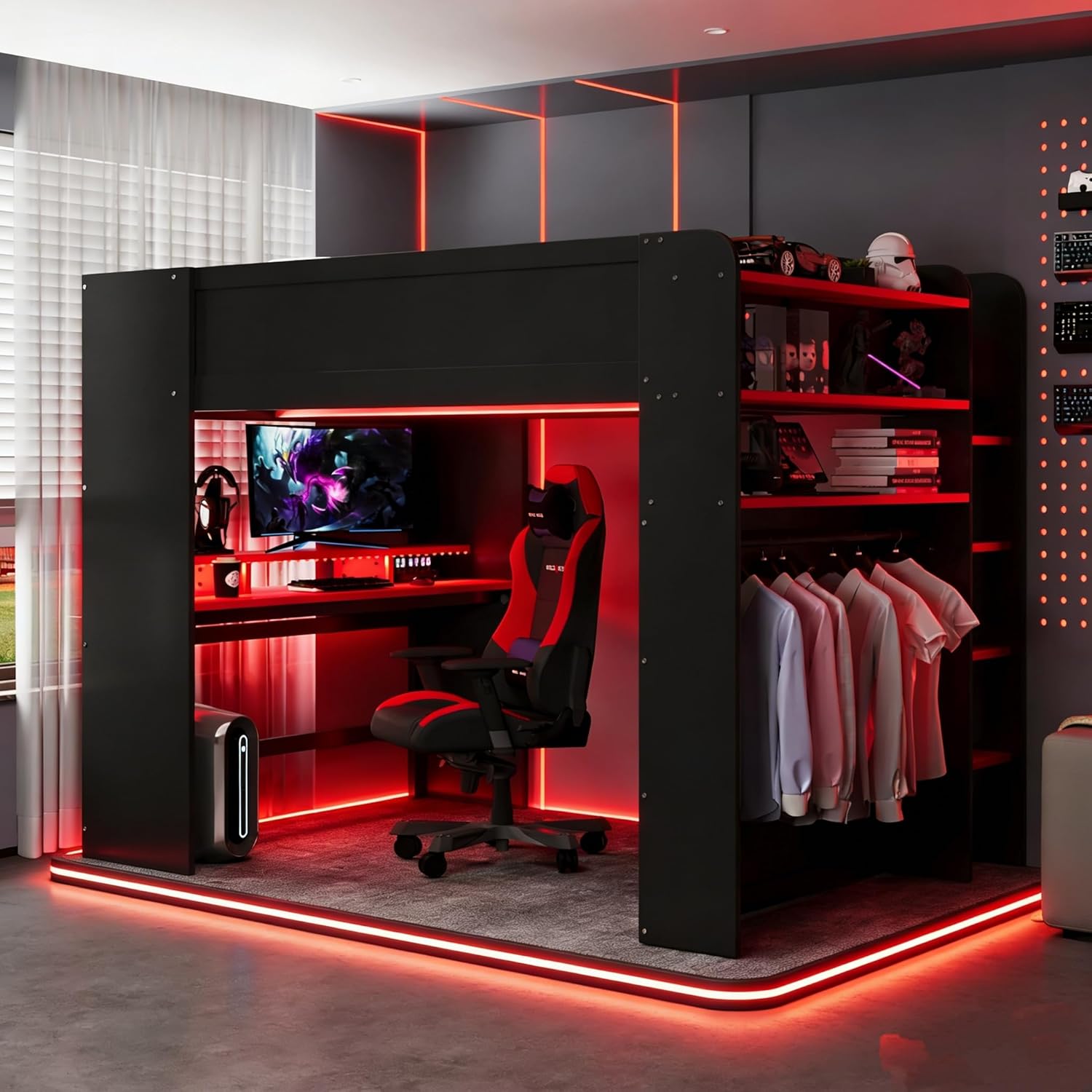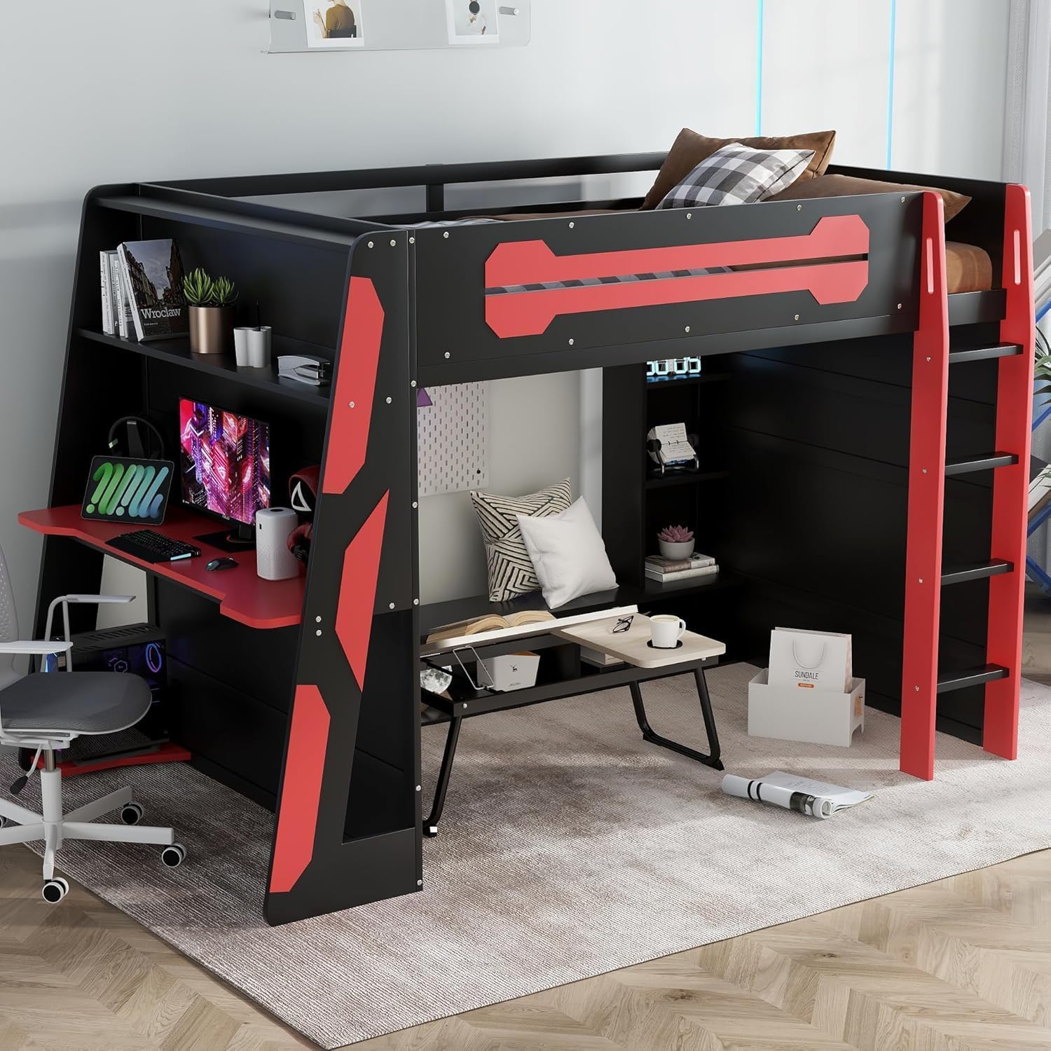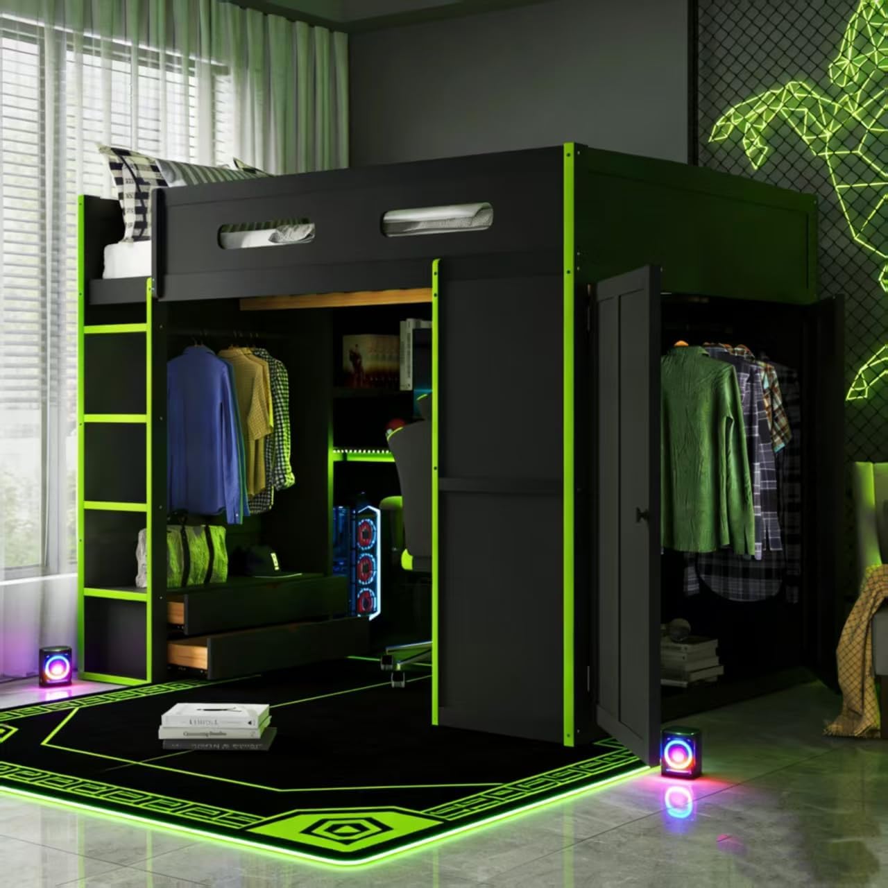 | Additional Features | Height-Adjustable Desk and Wardrobe,USB Port and RGB Light |