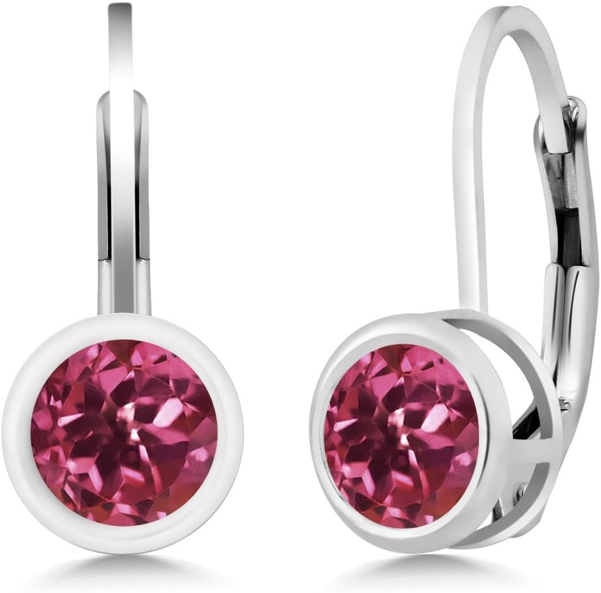 Gem Stone King 925 Sterling Silver Gemstone Birthstone Dangle Leverback Earrings For Women | Round 5MM | Round Genuine Birthstone Earrings | Fine Jewelry for Her Mom Wife