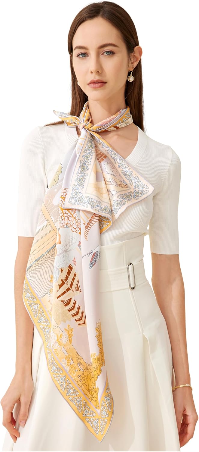 Our colorful large silk scarf lends an elegant twist to any outfit. Hypoallergenic and exceptionally comfortable, silk scarves are a charming addition to your wardrobe, or perfect as a classy gift. Our scarves are produced by China's top-rated silk manufacturer, which has obtained social responsibility certification, and both ISO9001 and ISO14001 certification. Indulge in the luxury of authentic Chinese silk today!