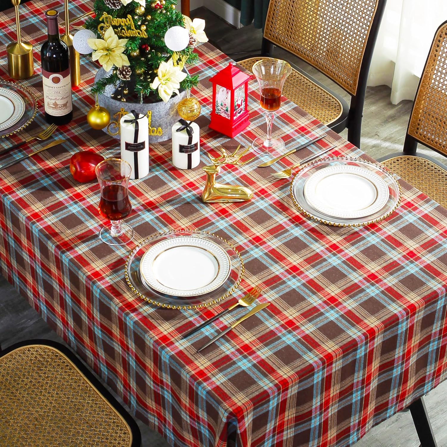 UWWGKK Green Plaid Tablecloth for Spring, Table Cloth Rectangle Table with Wipeable,Tablecloths for Dining Room,Kitchen,Party,Home Decor