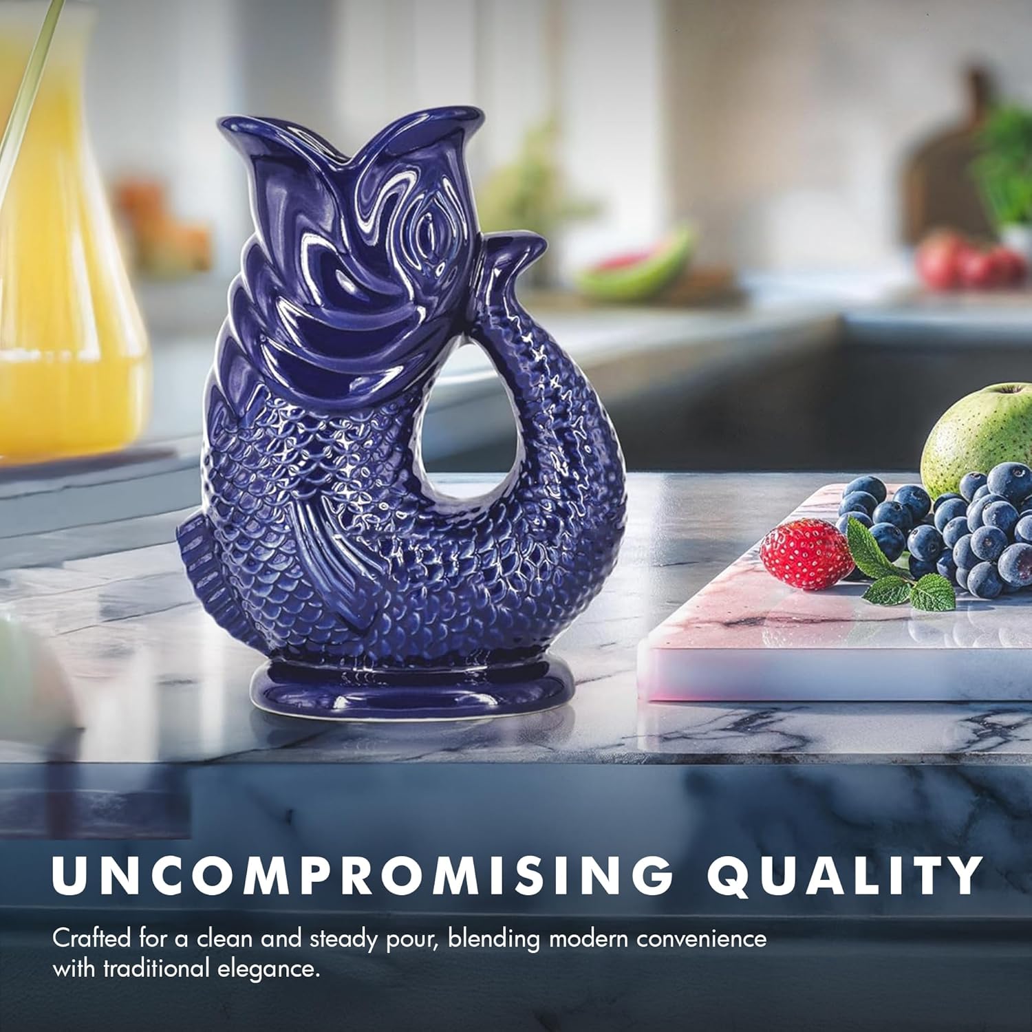 Gurgle Glug Jug The Bubble Jug® Dark Cobalt Blue 50 fl oz 1.5L Litre Extra Large Pitcher - Fish Shaped Jug - Decorative Ceramic Glugging Cocktail, Water and Gin Vase and Gurgling Carafe Pot