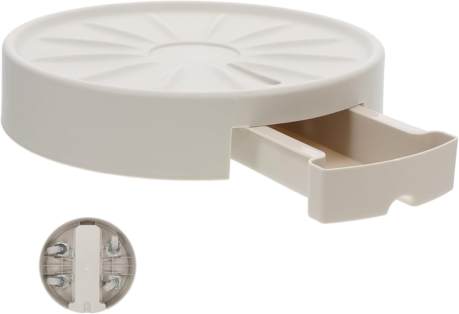 DescriptionFeatures-Color:Beige;-Material:PP;- Size: 28.00X26.50X5.20cm/11.00X10.41X2.04in;-Inner Diameter:25cm/9.82in;- Color: Beige;- Size: 28.00X25.00X5.20CM;Package Including1 x pot tray on wheels