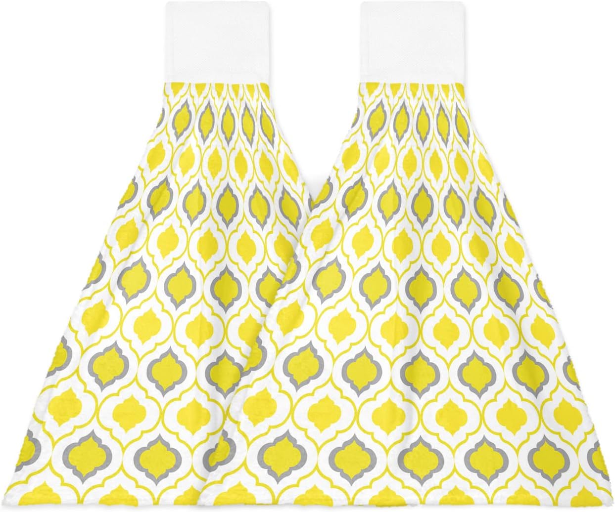 Hanging Kitchen Towels with Loop Moroccan Pattern Hand Tie Towels Set of 2 Geometric Trellis Grey Soft Absorbent Dish Dry Towel for Kitchen Bathroom Tabletop Tea Bar Decor Housewarming Gift