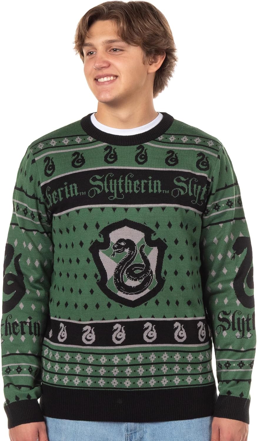 This Harry Potter men’s Hogwarts House Crest Sweater combines expressive knit design with everyday practicality. Each pullover features a detailed house crest and mascot pattern that captures the spirit of Hogwarts houses, from Gryffindor’s lion to Ravenclaw’s eagle. The ribbed cuffs, collar, and hem provide a comfortable, flexible fit that maintains its shape wear after wear. Made of 100% acrylic, this crewneck knit pullover offers warmth without the bulk, making it ideal for layering. The fabric is easy to care for—simply turn inside out, machine wash on a gentle cycle, and lay flat to dry. Crafted with attention to detail and durability, this sweater adds comfort, quality, and character to any wardrobe.