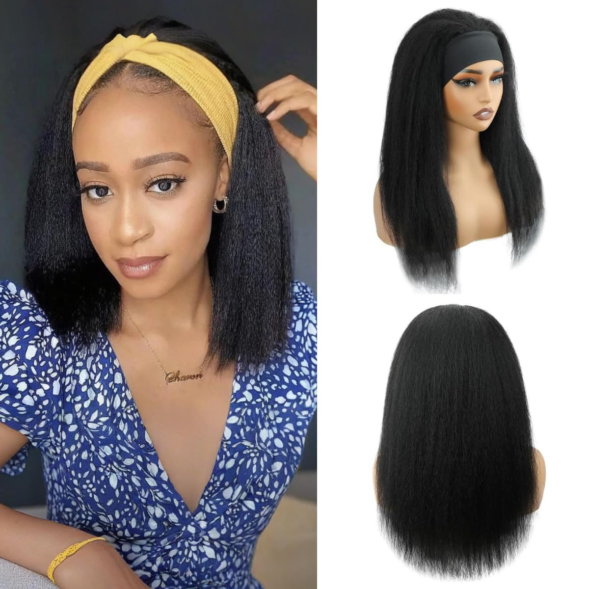 | Color | Natural Black Kinky Straight Headband Wig |