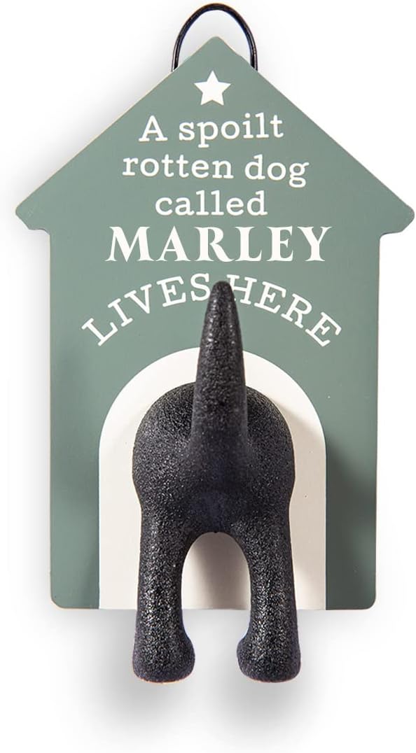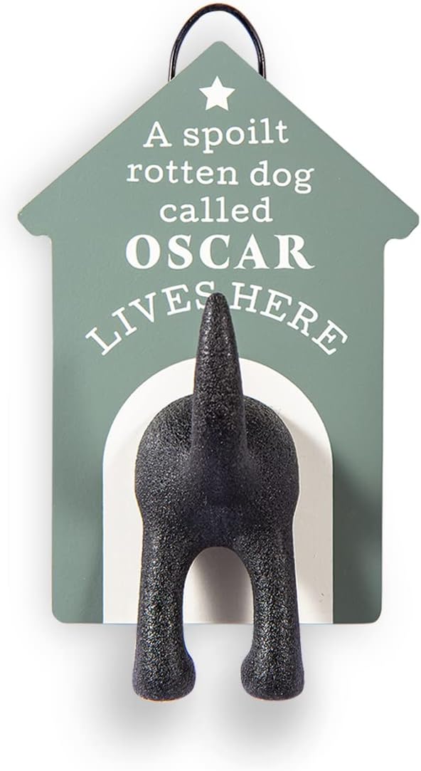 Now your much loved pet pooch can have their own personalised dog lead hook! Made from sturdy pvc -with a cute dog waggy tail style hook. Pre-personalised with a whole host of popular dog names and breeds with fun text that describes your pet perfectly. There's even the option of a blank hook with free transfers for those dogs with more unusual names. You can hang the hook or screw it to a wall or firm surface. A great gift idea for any dog lover! PLEASE NOTE: These items are pre-personalised. The item you receive is the name or title that you have selected. Items are not personalised to order and we do not offer bespoke customisation.