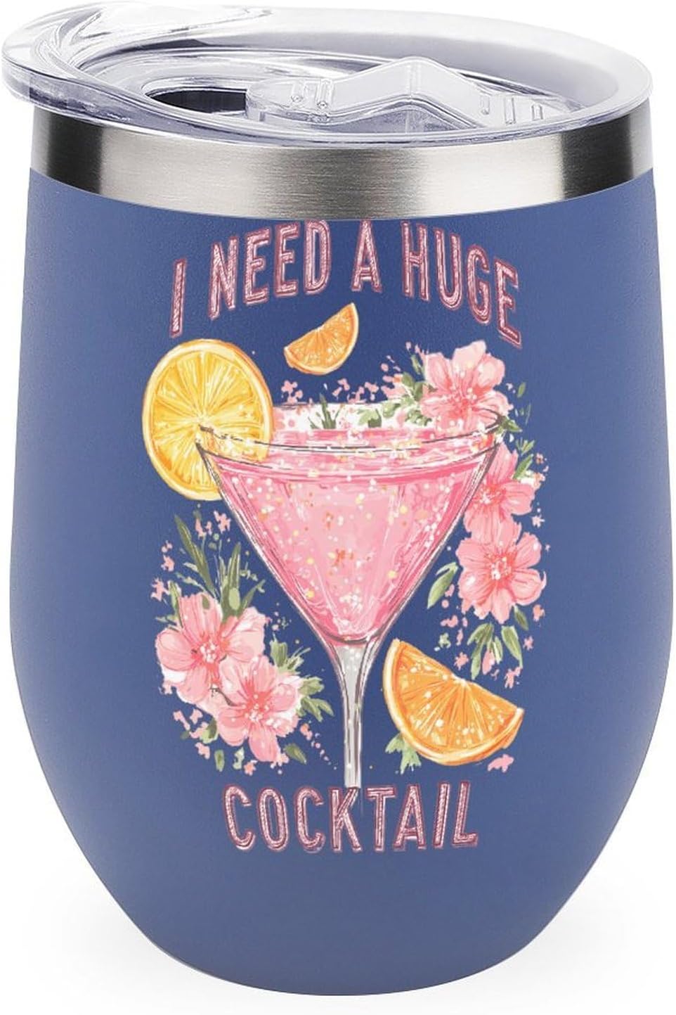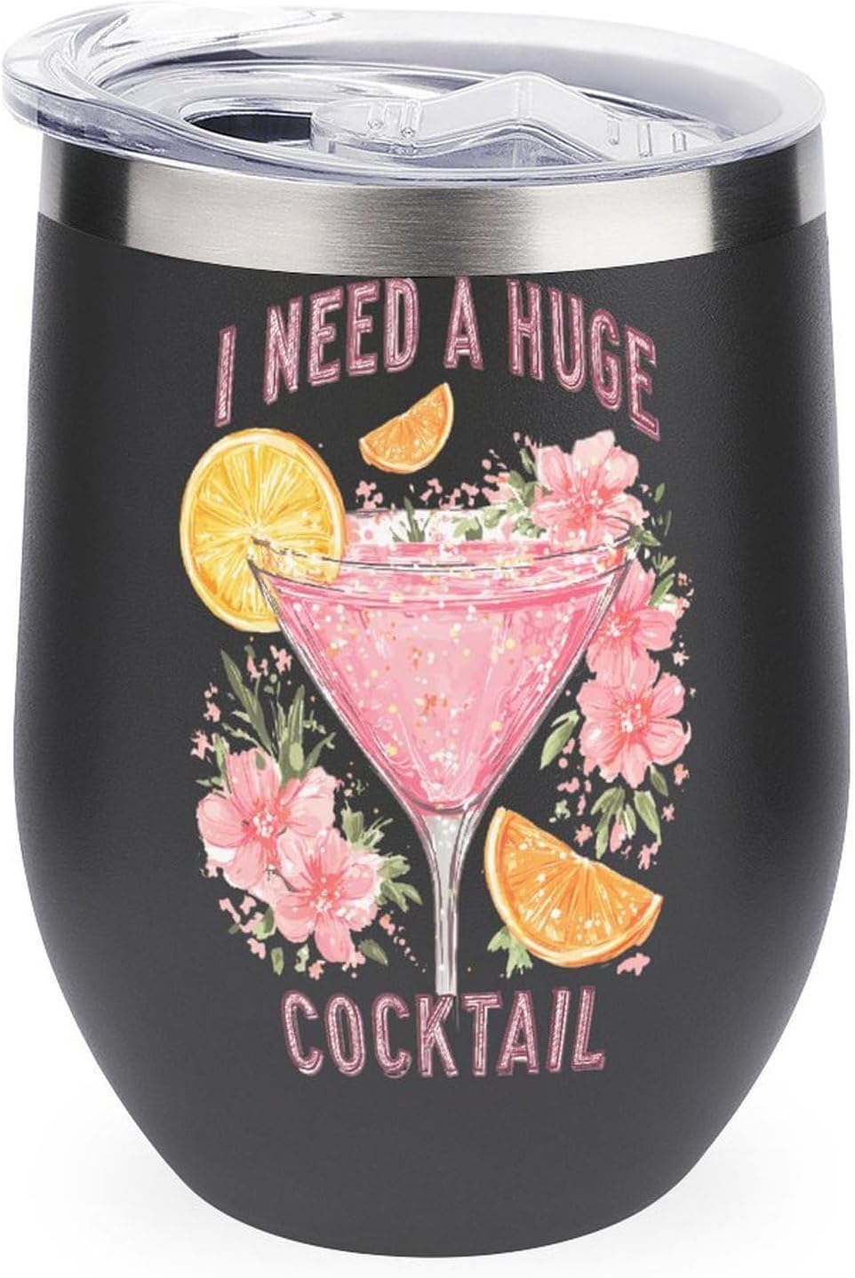 I Need A Huge Cocktail Insulated Drinking Cup Stainless Steel Coffee Mug Wine Tumbler with Lid 12OZ