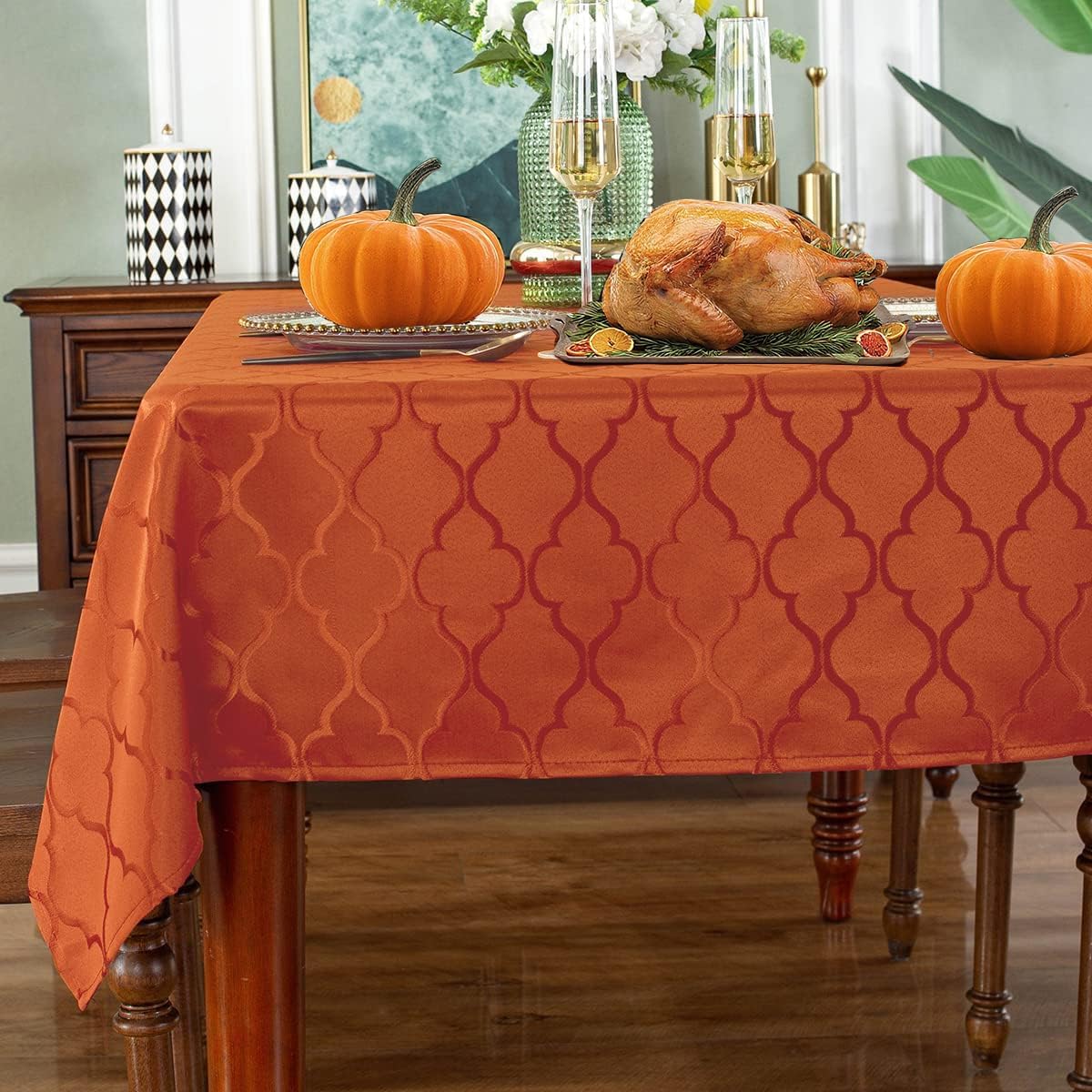 • Premium Quality: This durable tablecloth is made of premium and heavy weight polyester jacquard fabric to ensure the protection of your table and furniture. Made of well treated fabric, this table cloth is smooth, Dust-Proof and wrinkle resistant.