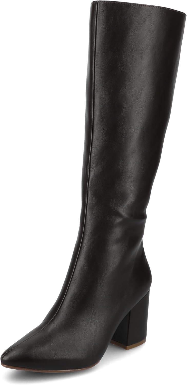 Heel Height: 3-inch. Heel Type: Block Heel. Platform Height: Flat-inch. Shaft Height: 14 inches. Calf Circumference: 14 1/2 inches. Top Circumference: 14 1/2 inches. Shoe Width: Medium. Closure Type: Inside Zip. Toe Style: Pointed. Lining: Fabric. Upper Material: Vegan Leather. Outersole Material: Man-made. Footbed: 4 MM. All measurements are approximate and were taken using a size 6. Please note measurements may vary slightly by size.