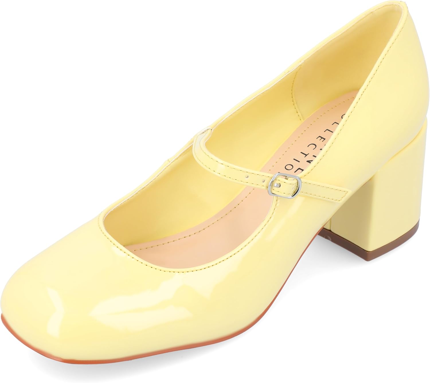 Our Okenna heels from Journee will have your feet feeling more comfortable than ever while still giving you all the style you've been looking for. The 4 mm insole offers support, and the patent vegan leather and covered block heel make them super chic. A Mary Jane-styled strap tops the design for a vintage look.