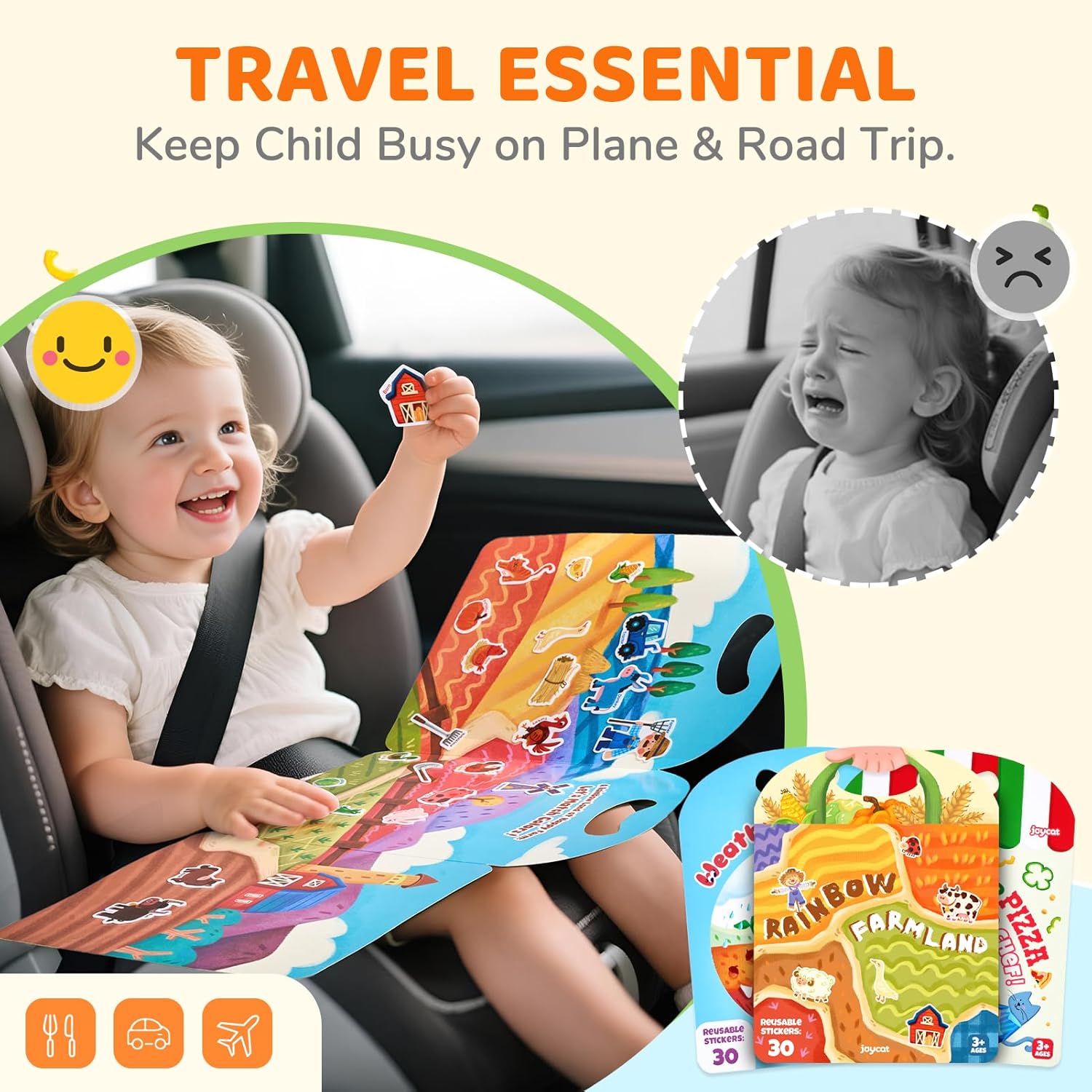 JoyCat Reusable Sticker Book Set (3-Pack): Farm, Pizza-Making, Weather - 90 Pcs Stickers for Toddlers + 26 Large Soft PVC Uppercase Alphabet ABC Refrigerator Magnets