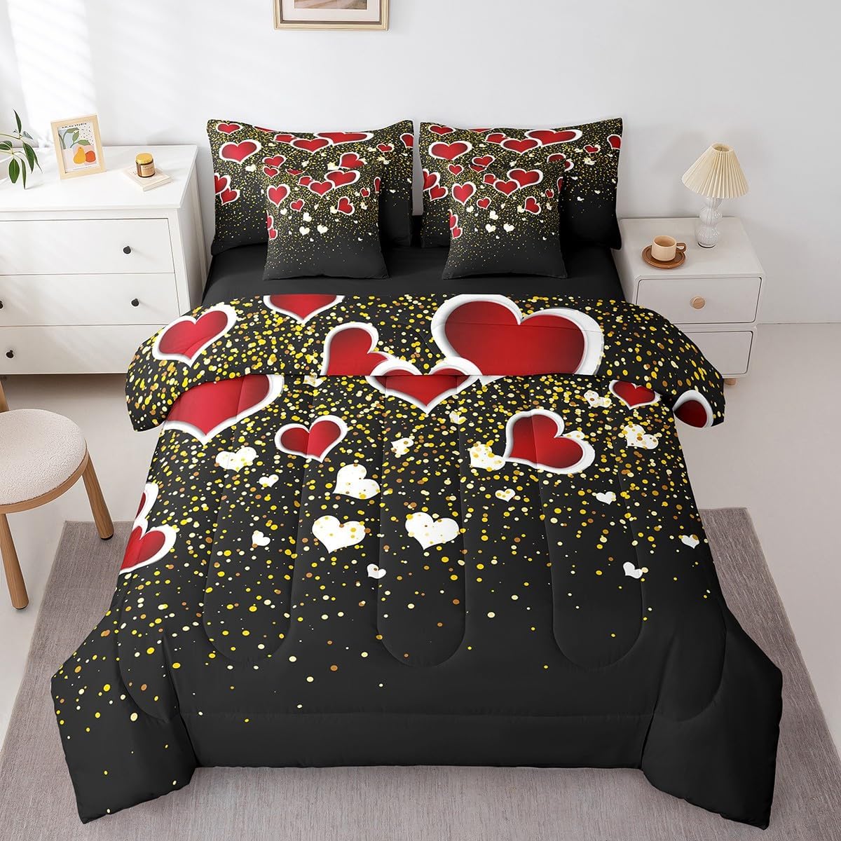 | Included Components | 1 Fitted Sheet (78x80x16"), 1 Flat Sheet (106"x90"), 2 Pillow Shams (18"x18"), 2 Pillowcases (20"x35"), Comforter |