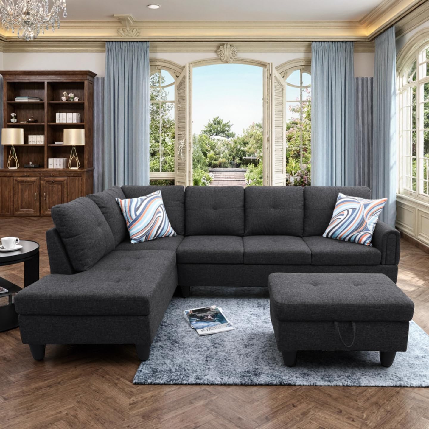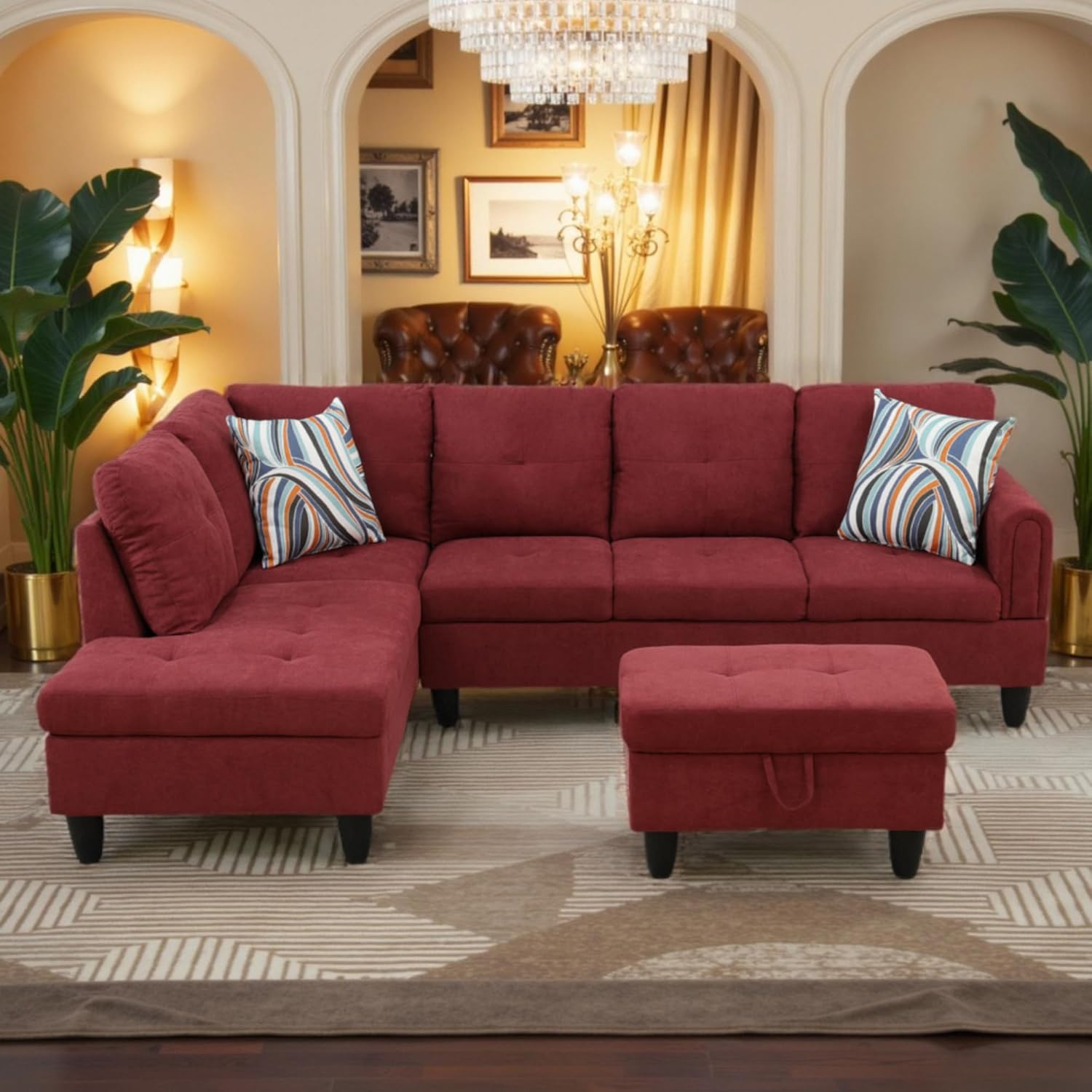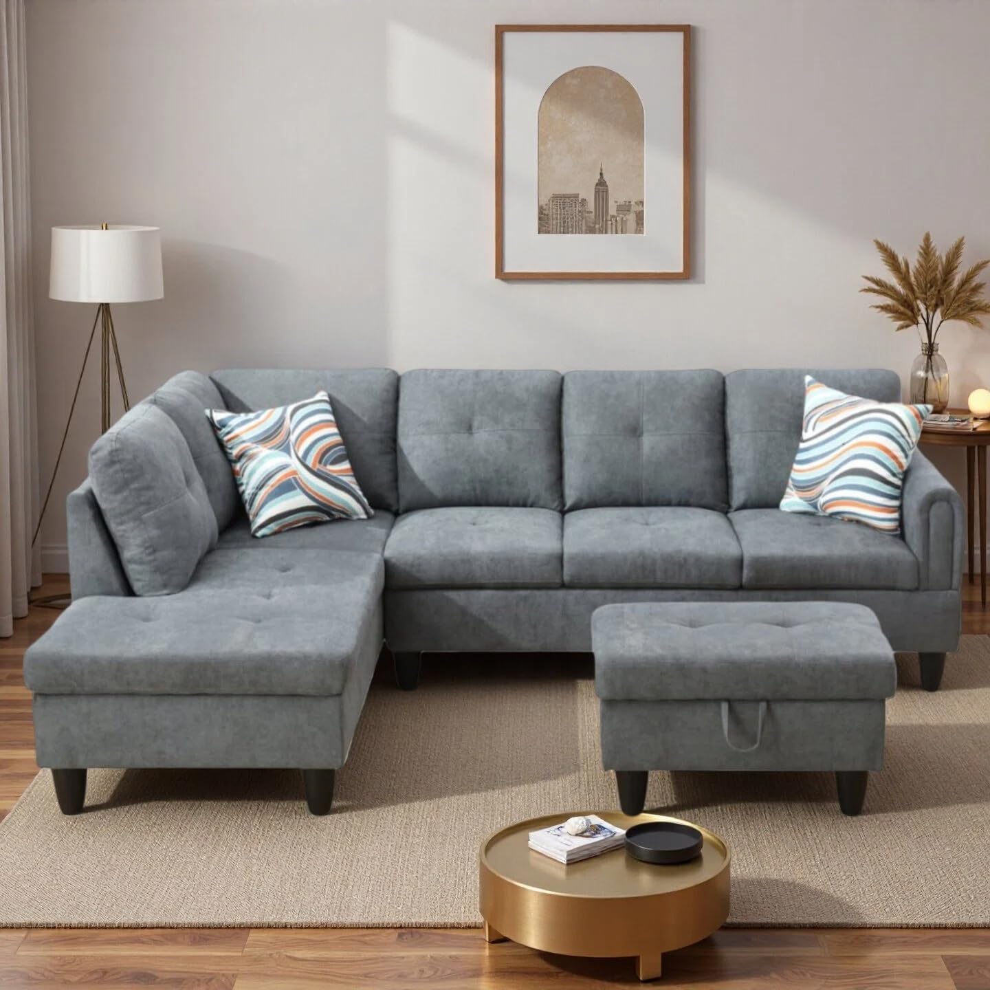 Trygoal L Shaped Couch Sectional Couches with Chaise and Storage Ottoman, 3 Pieces Modular Convertible Sofa for Living Room Furniture Sets and Small Apartment, Teal Blue