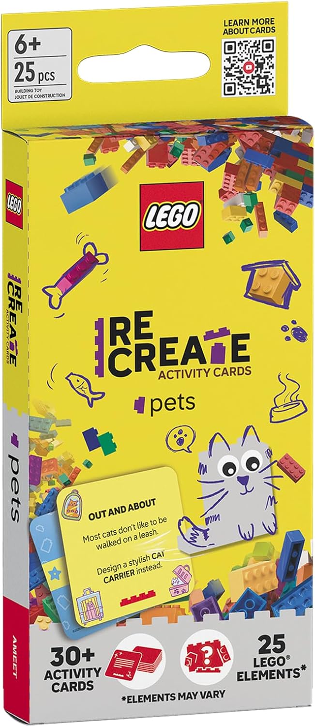 CREATE, BOOST, and add a TWIST This Space-themed, pocket-sized set provides multiple, fun building challenges for a 6+ audience, and includes: - a deck of 30+ cards with three different ways to play - 25 LEGO elements Welcome to a world of endless possibilities Each card contains a fun, space-themed challenge, such as building your own planet, making a powerful rocket or dreaming up an alien to play with. Can you build a robot, a command base or a cool pair of anti-gravity boots? LEGO Books: ReCreate Activity cards are the go anywhere, play any time, ulltimate building experience. Whether playing on your own, with family or friends, keep drawing out new cards and experimenting with the LEGO elements to find out what you'll be building next. The only limit is your imagination Also available: Animals, Ocean, Tech, Nature, Castle LEGO, the LEGO logo and the Brick and Knob configurations are trademarks of the LEGO Group.2025 The LEGO Group. All rights reserved.