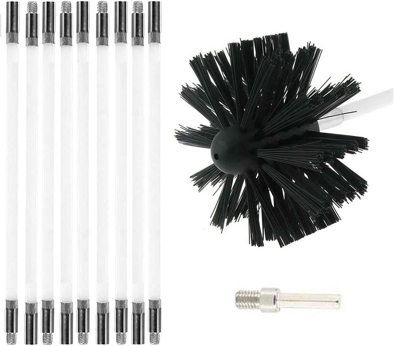 Chimney Sweeping Brush Chimney Sweep Kit Chimney Cleaning kit with 6/9/12/15 Nylon Flexible Rods for Fireplace Flue Home UseProduct DescriptionFeature:- Suitable for metal flues and brick chimneys of different diameters and shapes.- According to the actual selection of the corresponding pole length.- Able to clean the chimney efficiently from bottom to top.- Convenient quick disassembly and assembly structure, easy to use and operate.- Will not scratch the inner surface of the pipe.- The working head is made of reinforced polyester fiber, which is wear-resistant, has a long life and is not easy to break.Specification:Material: Polyester fiberSize: Polyester fiber rod length is about 410mm/16.14inch, 610mm/24inchPacking List:410mm*100mm*6/9/12/15 Rods + 1*Brush Head + 1*Chuck Adapter + 1*Small Wrench610mm*100mm*6/9/12/15 Rods + 1*Brush Head + 1*Chuck Adapter + 1*Small WrenchWarm prompt:1. Only the above list is included. The other products in the picture only show how they are used.2. As different measuring methods,it will occur 1-3 cm deviation about the items,please ensure that it is okay for you before ordering.3. Because of different monitors and lamplight,the picture may not reflect the actual color of the item,really thank you for your kind understanding!chimney sweep kit cleaning extends up to 30 feet cleaner tools system with brush 9 flexible rods dryer duct 2-in-1 fireplace drier vent lint sweeping drill attachment synthetic head rod remover dry long nylon rotary drive kits reusable 18 ft