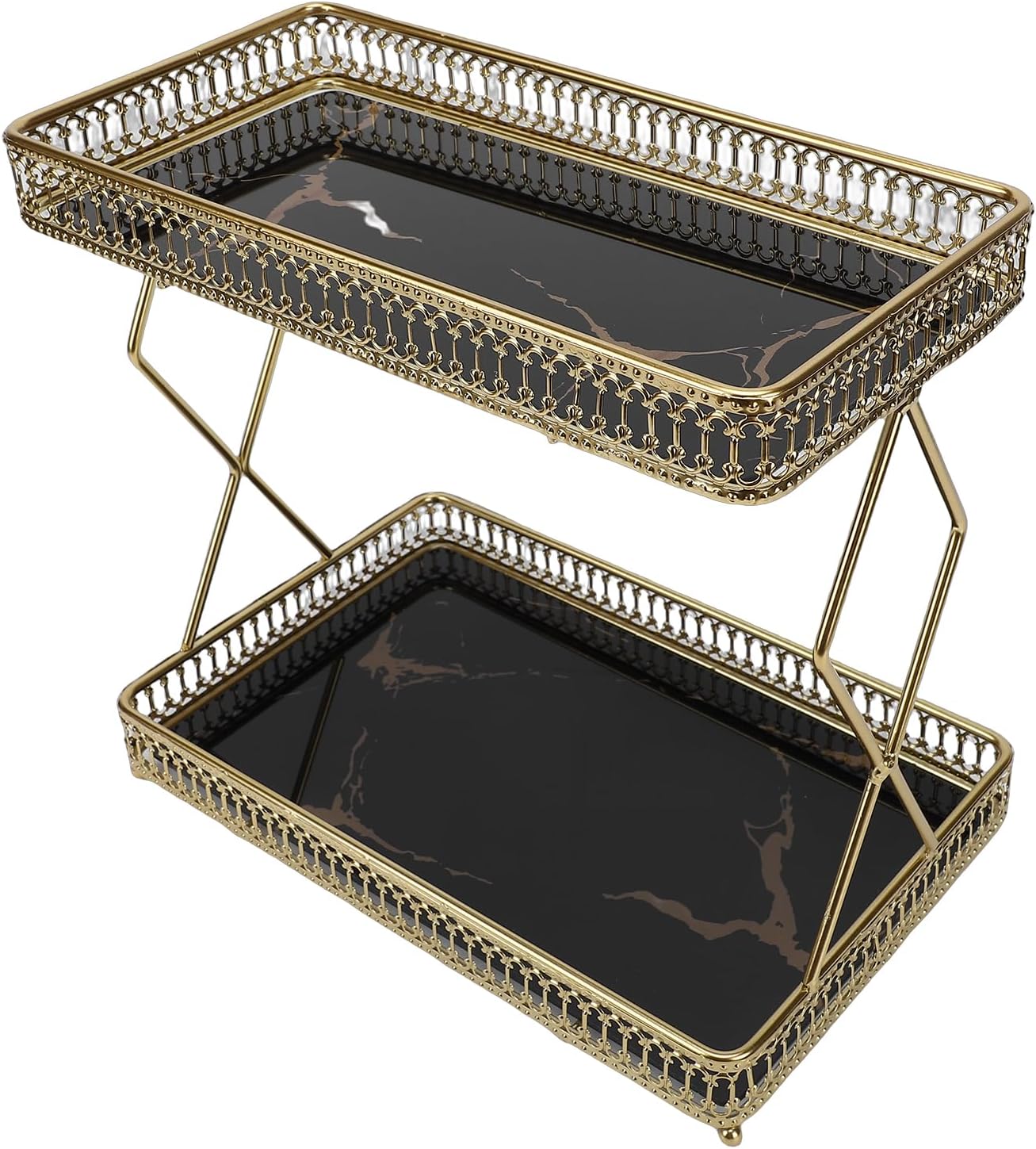 Specification: Item Type: Bathroom Countertop Storage Shelf Material: Iron, Glass Weight: Approx. 1524g / 53.8oz Product Size: Approx. 29x18.5x27cm / 11.4x7.3x10.6in Package List: 1 x Storage Shelf 2 x Tray