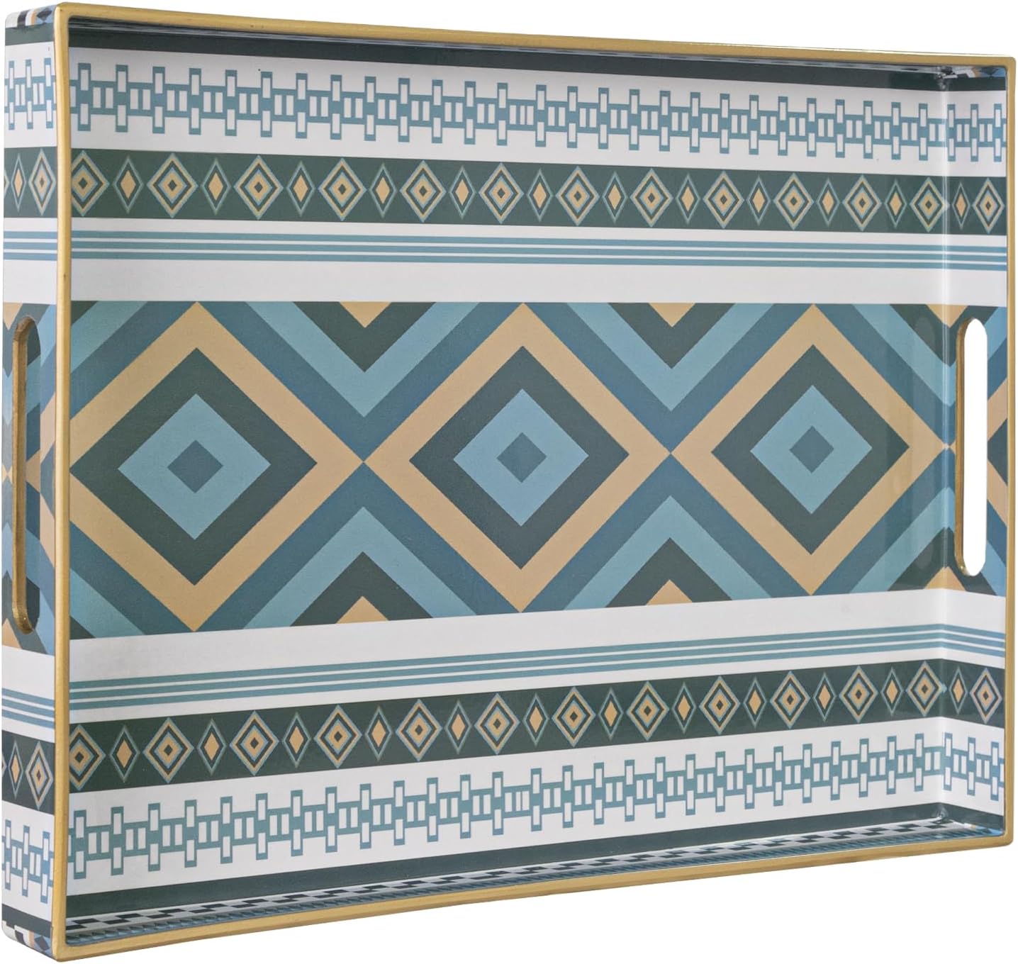 • STORAGE: This decorative serving tray has enough space for your TV remote, wallet, keys, sunglasses, mail, etc. so that you can find it in any situation. This decorative tray for coffee table will update your space and make your space look organized, which is an ideal service tray for ottoman, coffee table, bedside table, dining table and bathroom.