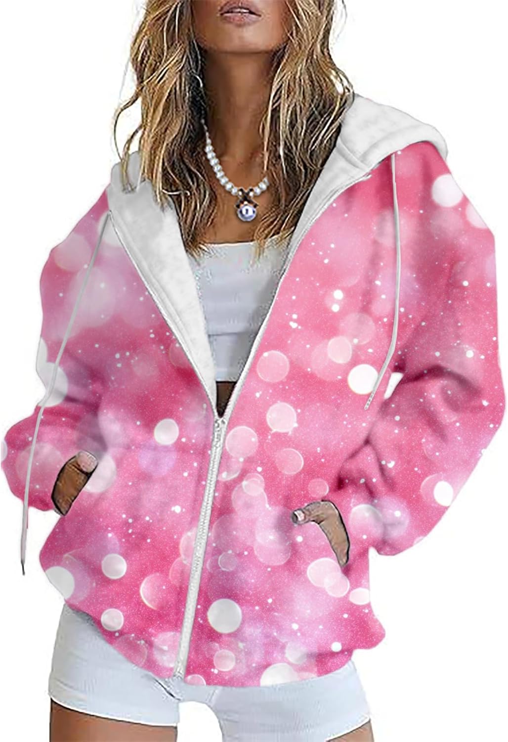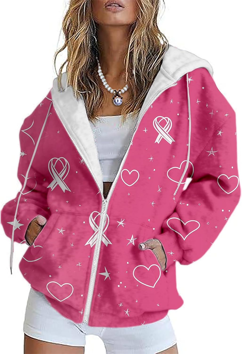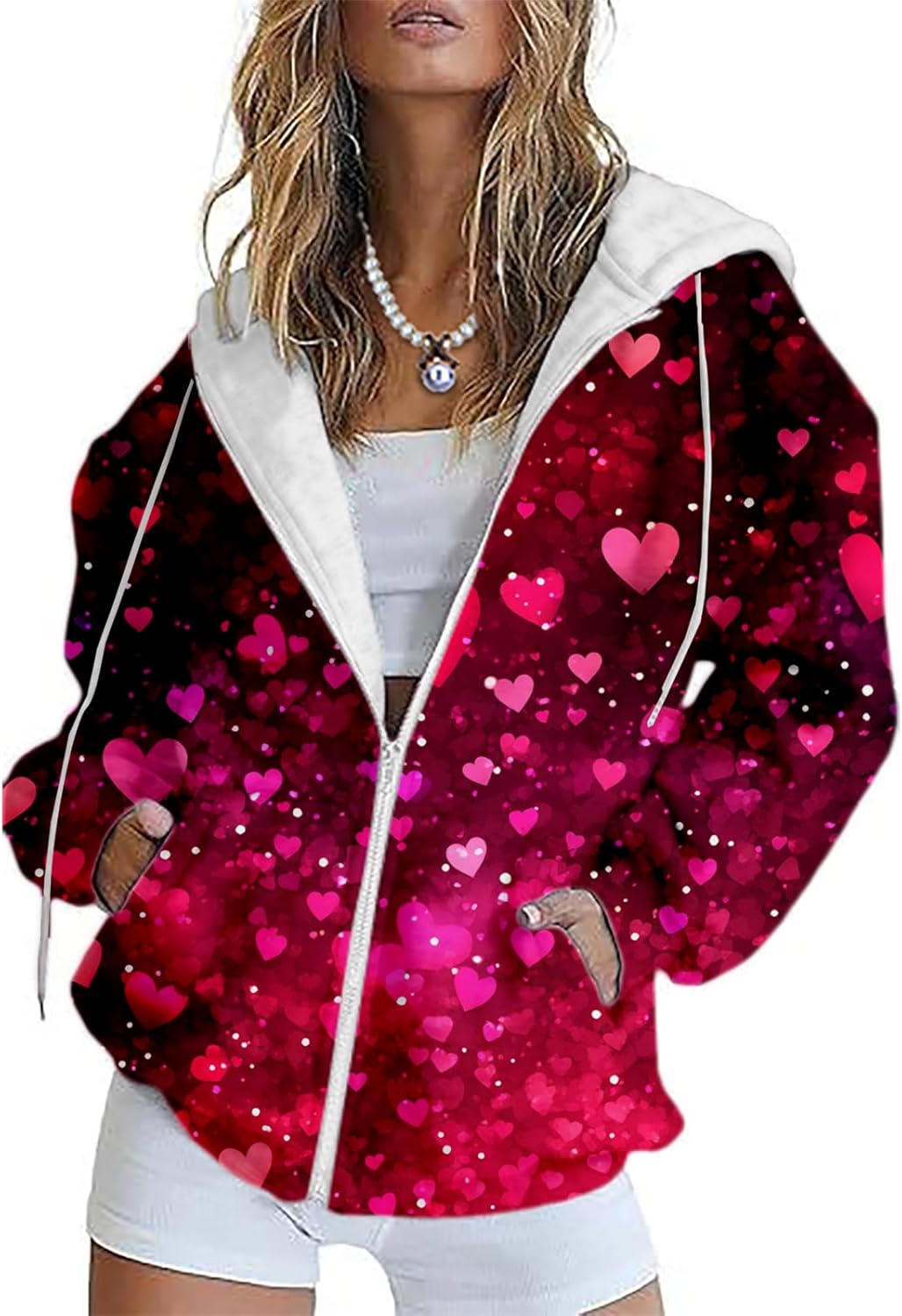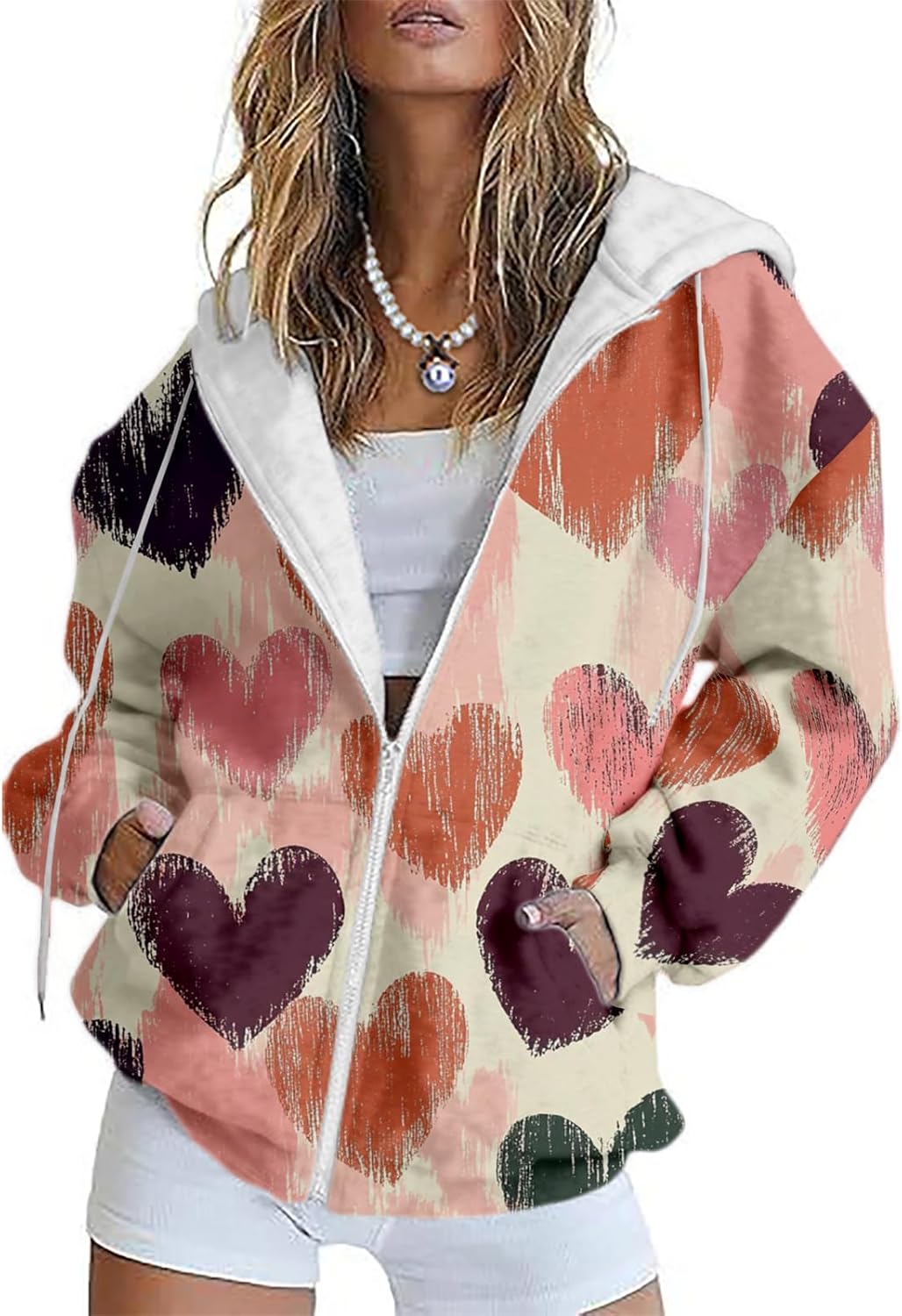 MARSVOVO Cute Love Heart Women Jacket Fall Long Sleeve Zipper Hooded Sweatshirts Trending Fitted Casual Lightweight Camp Ladies Hoodies Oversized